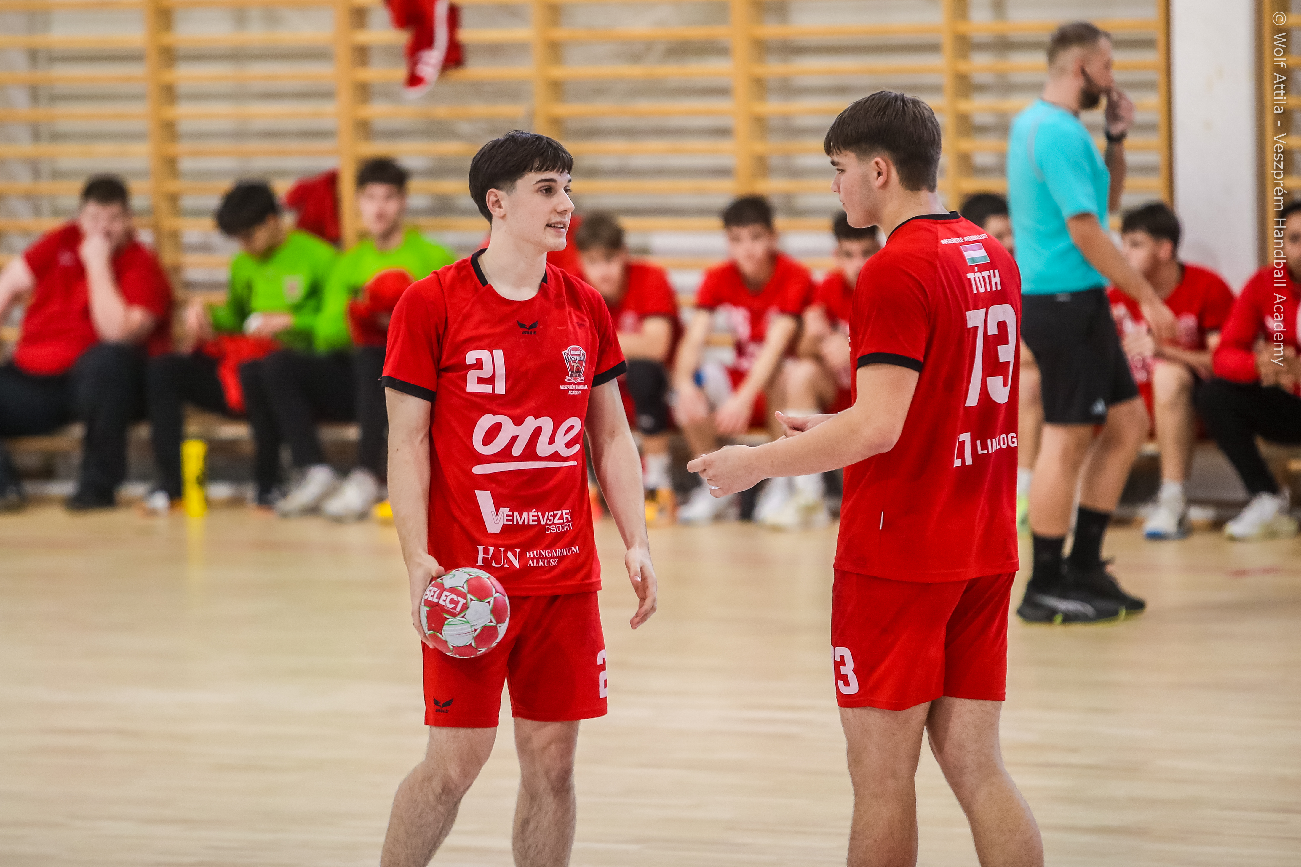 Az U20-as bajnokság 4. fordulójában akadémistáink a Budai Farkasok csapatát fogadták a DEVM Csarnokban. A találkozót a veszprémiek kezdték, a kezdősorban Körösi, Vandra, Edwards, Juhász-Tóth és Szabadi kapott helyet, míg a kapuban Tari Zsolt állt. A mérkőzés remekül indult hazai szempontból: előbb Tóth Barnabás talált be beállóból, majd Szabadi Anthony értékesített egy ziccert, így hamar kétgólos előnybe kerültünk (2:0, 2. perc). A vendégek betörésből szépítettek, ám Vandra kemény védekezésének köszönhetően labdát szereztünk, amelyet kétszer is gólra váltott. A fővárosiak hetesből és újabb betörésből próbáltak kapaszkodni, 4:3-ra fel is zárkóztak. A folytatásban kiegyenlített játék zajlott: Edwards büntetőből, Szabadi ismét ziccerből növelte a különbséget, de a Farkasok továbbra is tartották magukat (6:5, 12. perc). Ekkor érkezett pályára Czinczás Barna, aki rögtön átlövésből volt eredményes. Nem sokkal később Tari védését követően Körösi is megszerezte első gólját. A játékrész közepén Harnóczi és Bartha is bekapcsolódott a támadásokba, Anthony pedig újabb labdaszerzés után végigvitte akcióját, aminek hatására a vendégek időt kértek (10:7, 17. perc). A tempó ezután felgyorsult, mindkét fél gyors támadásokkal próbált operálni. Bartha és Körösi találataival már a 13. gólját szerezte a Veszprém, de az ellenfél rendre 2–3 gólra visszazárkózott. A 21. percben Petrik Nimród is pályára lépett, Tari újabb bravúrja után pedig Gulyás István időt kért (13:10). A félidő utolsó perceiben gólcsend következett: kimaradt helyzetek, védések és technikai hibák váltották egymást, a különbség azonban maradt két gól. Viczina a védelemben kapott szerepet, Edwards betörésből szerzett találata pedig kétperces kiállítást is eredményezett. A játékrész hajrájában Petrik büntetőt harcolt ki, amelyet Czinczás magabiztosan értékesített, így alakult ki a félidei eredmény: 16:13.