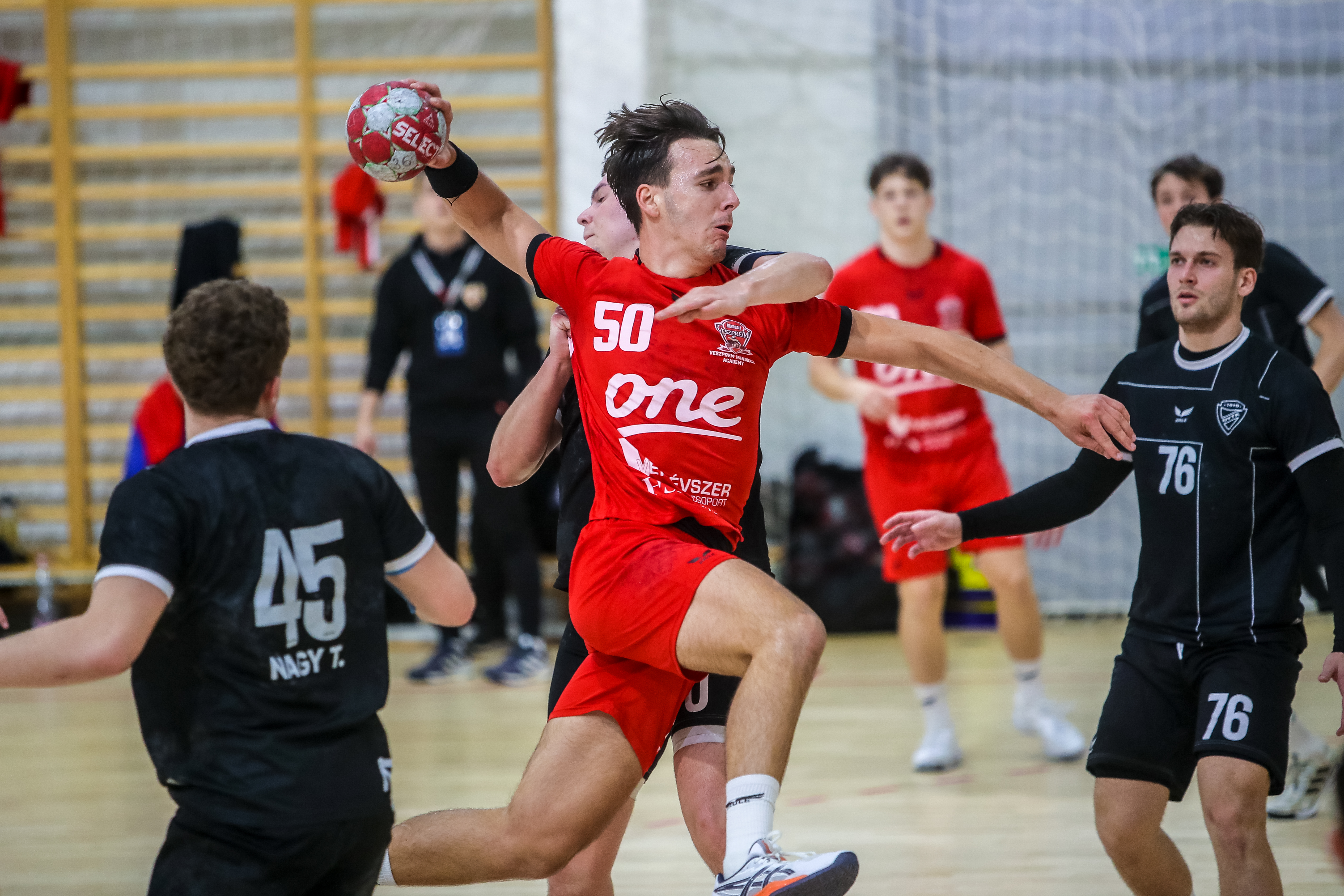 Az NB I/B bajnokság 9. fordulójában a Veszprém Handball Academy a DVTK csapatát fogadta a DEVM Csarnokban. A mérkőzést akadémistáink kezdték jobban, hiszen az első hét percben 7 gólt szereztek, miközben a vendégek csupán egyszer találtak be. A DVTK ezt követően időt is kért, hogy rendezze a sorait, ám a veszprémi lendület nem tört meg: a félidő felénél már 12–3-as hazai vezetést mutatott az eredményjelző. A különbség a 20. percet követően stabilizálódni látszott a 10–11 gólos előny környékén. Csapatunk gyors lerohanásokból tovább növelte előnyét, miközben védekezésben is stabil teljesítményt nyújtott. Az első harminc perc végére a játék képe nem változott: a fiúk magabiztos előnnyel mehettek pihenőre (19:9 30.perc).