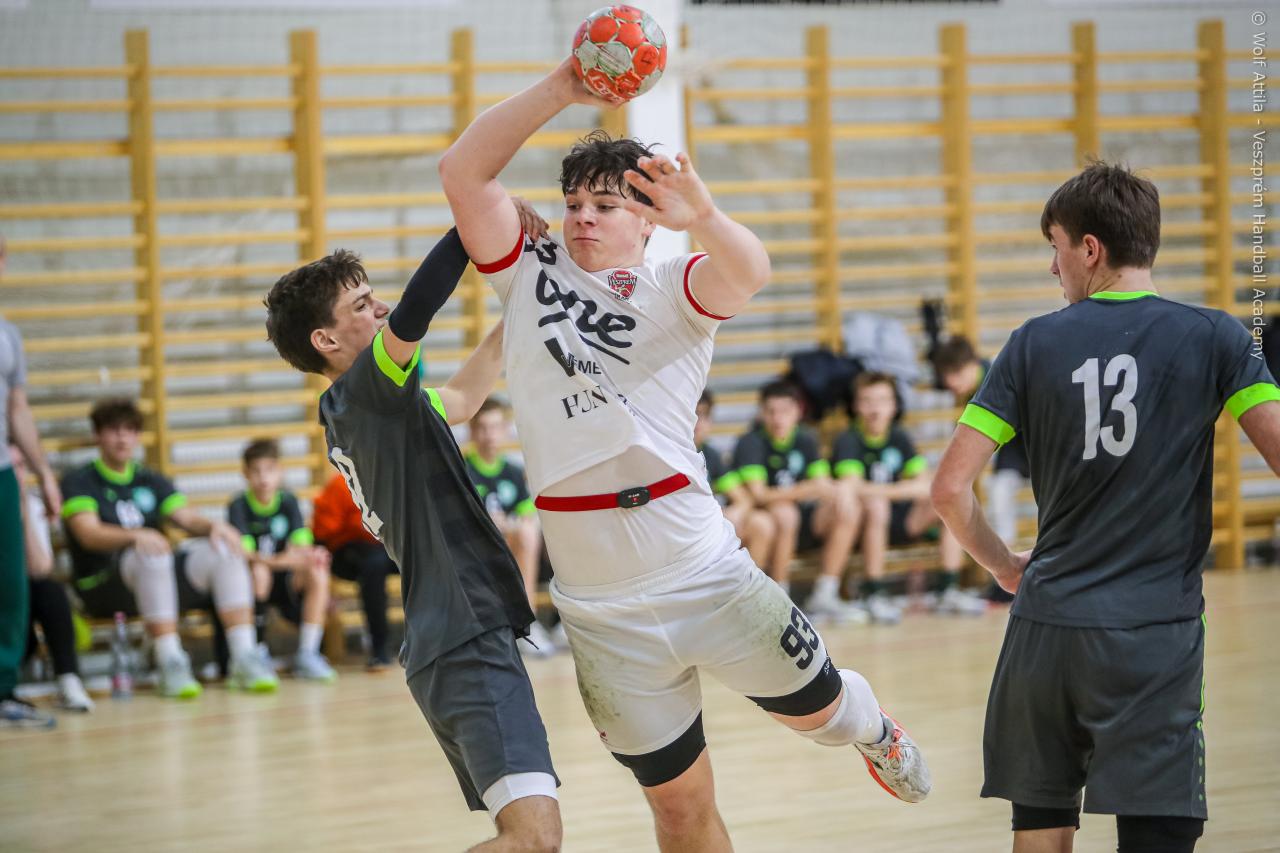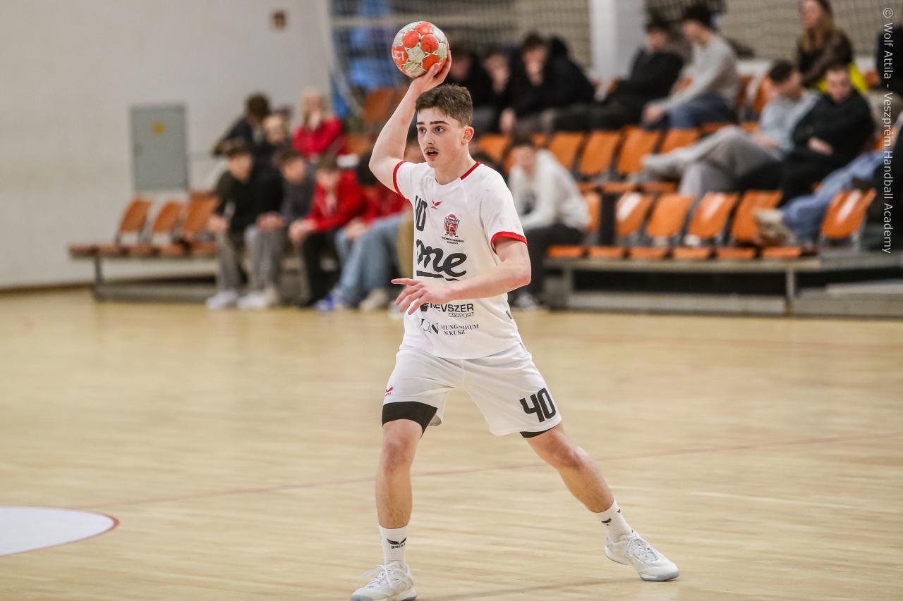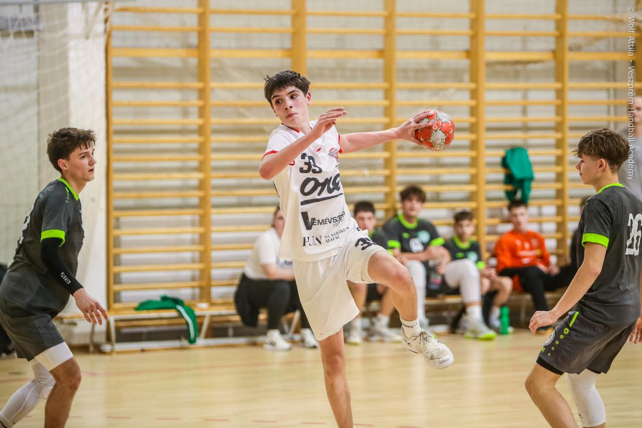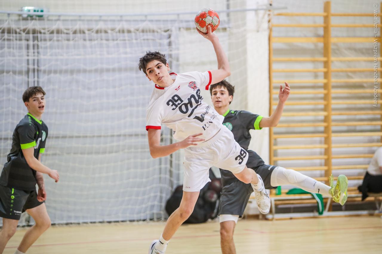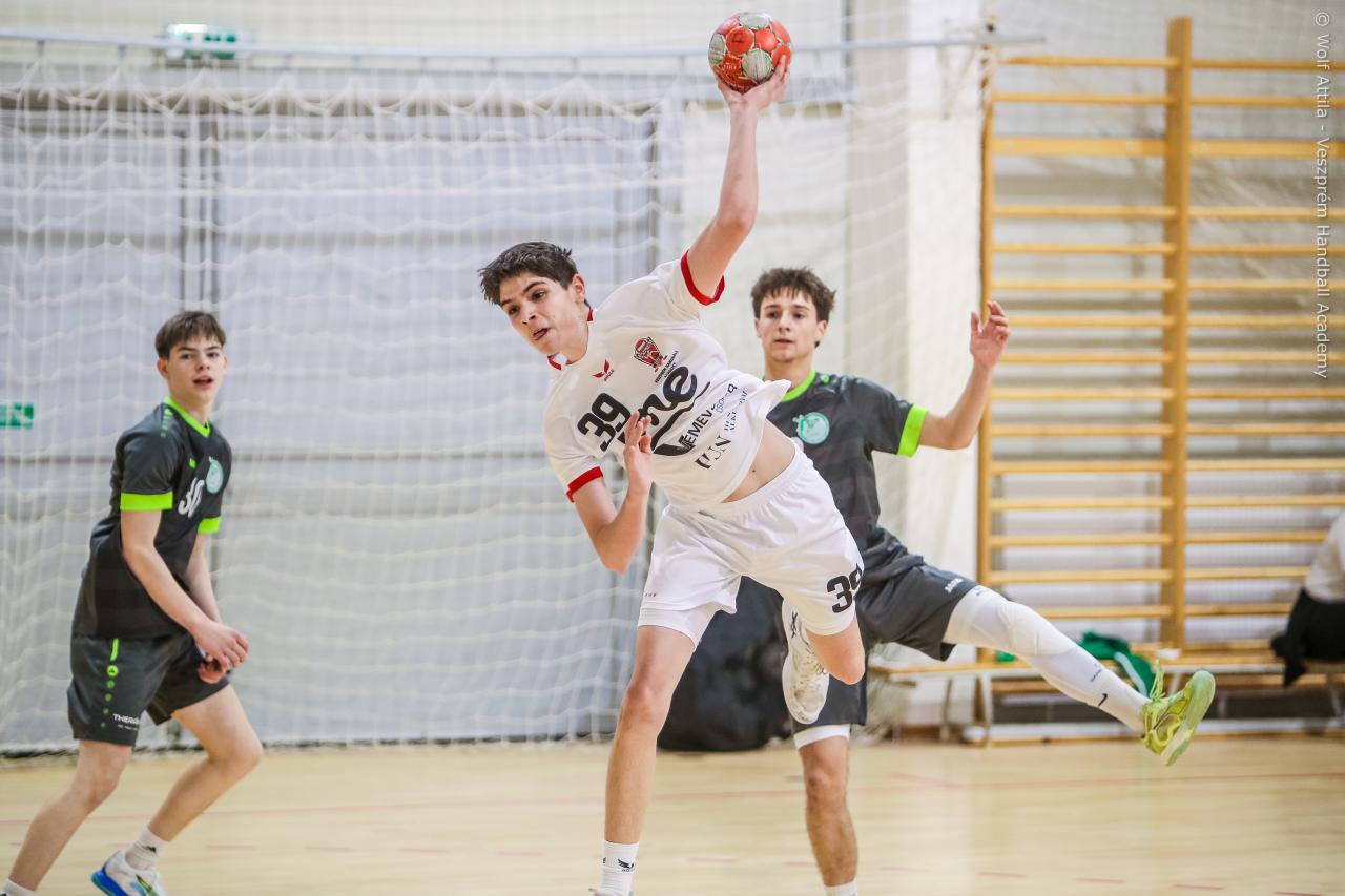 Az U16 I. osztály 12. fordulójában a Veszprém Handball Academy csapata az Agrofeed UNI Győr együttesét fogadta a DEVM Csarnokban. A találkozó remek iramban indult, ám a kezdeti lendületet mindkét oldalon több technikai hiba is árnyékolta. Az első öt percben két győri találat és egy veszprémi hétméteres gól született. A hektikus játék továbbra is megmaradt, a mérkőzés képe eleinte nem változott jelentősen, ám ezt követően a hazai lövések is egyre pontosabbá váltak. Átlövésekből Takács és Bedenek is többször betalált, így a félidő közepére egy–két gólos veszprémi előny alakult ki. Ezt követően a veszprémi védekezés még fókuszáltabb lett, több labdaszerzés után pedig Békési Péter ziccer góljaival akadémistáink tovább növelték a különbséget, miközben a győri védekezés is fáradni látszott. A játék képe az első harminc perc végére már nem változott: a veszprémi fiúk lerohanásokkal tíz gól fölé növelték előnyüket, és végül tizenkét gólos vezetéssel vonulhattak pihenőre (22:10, 30. perc).