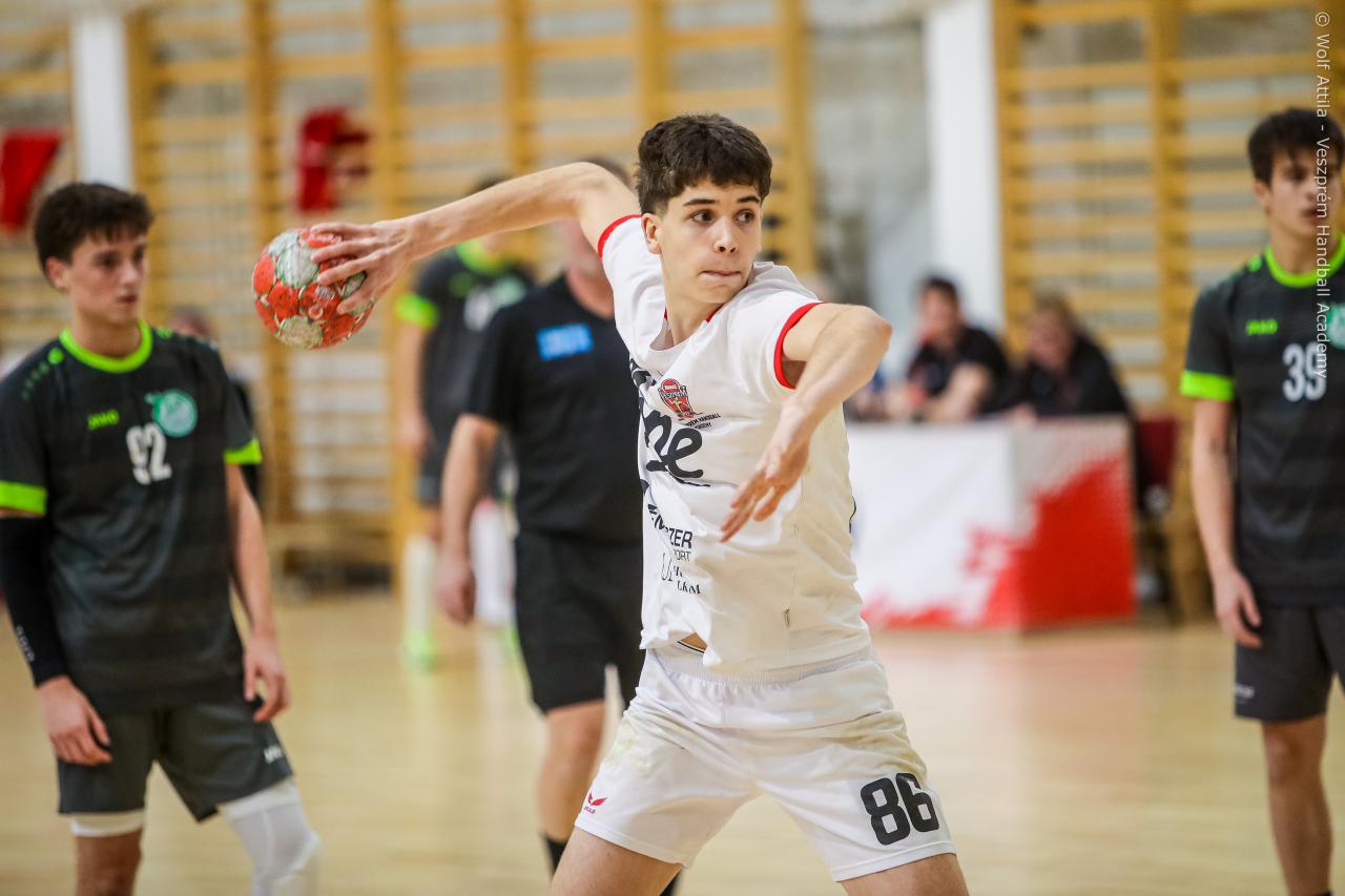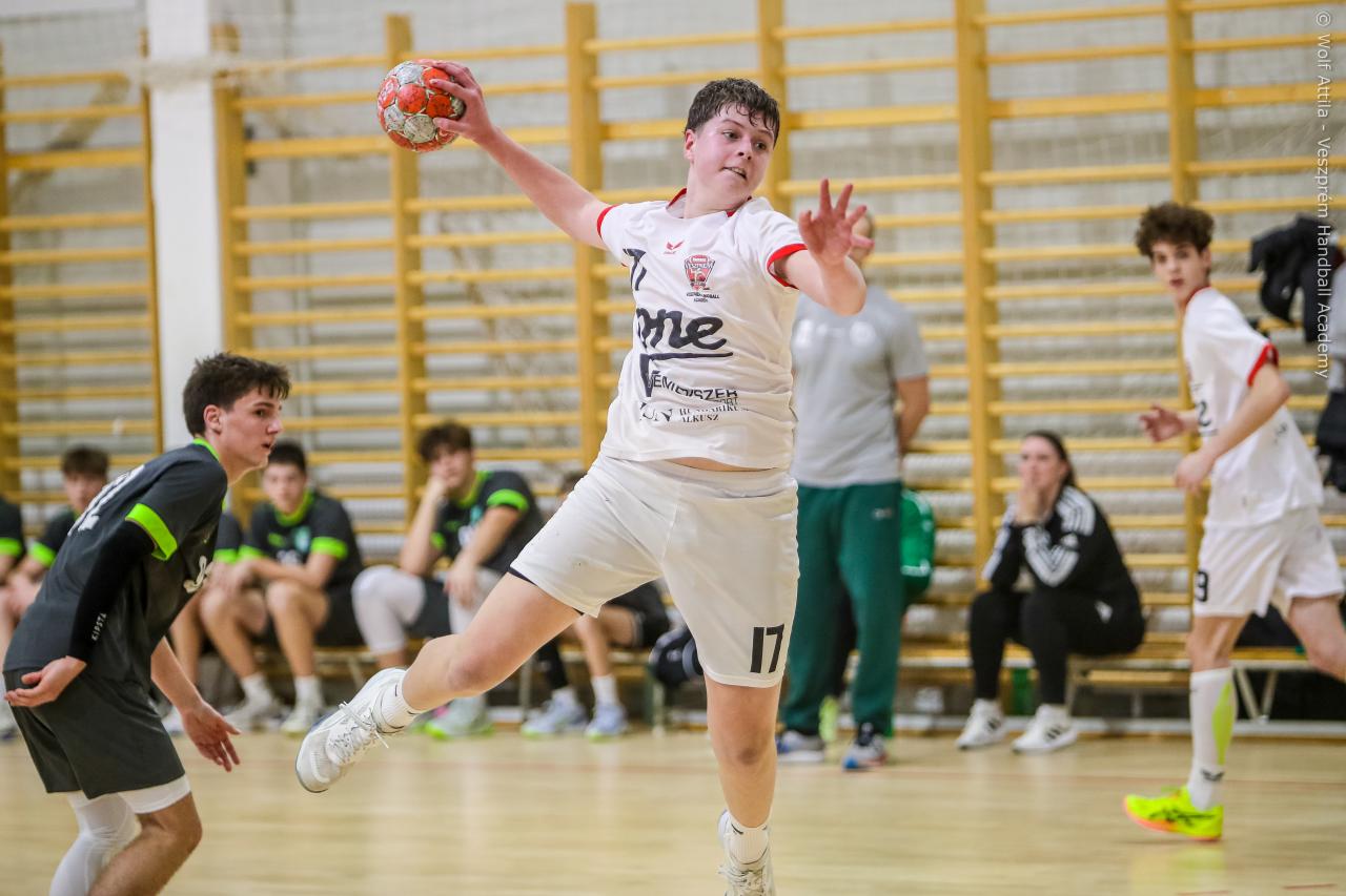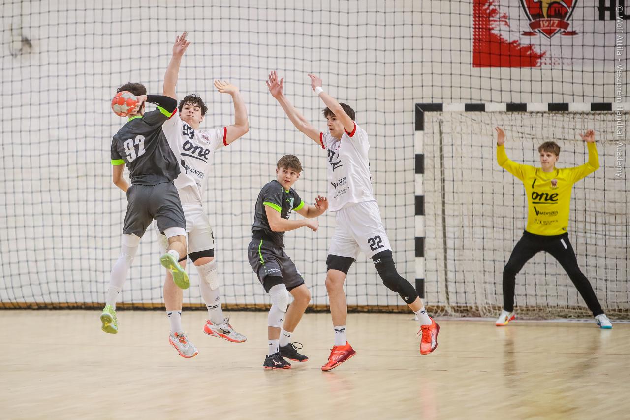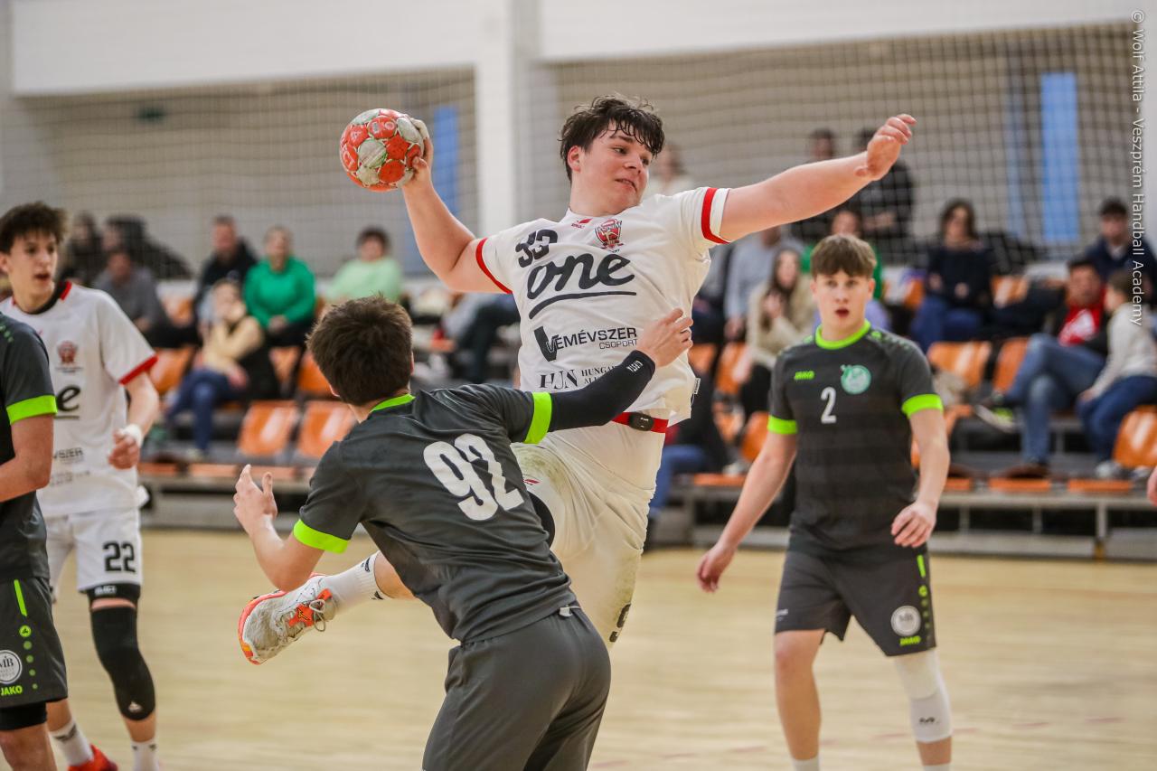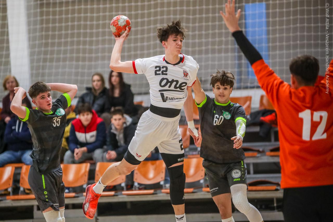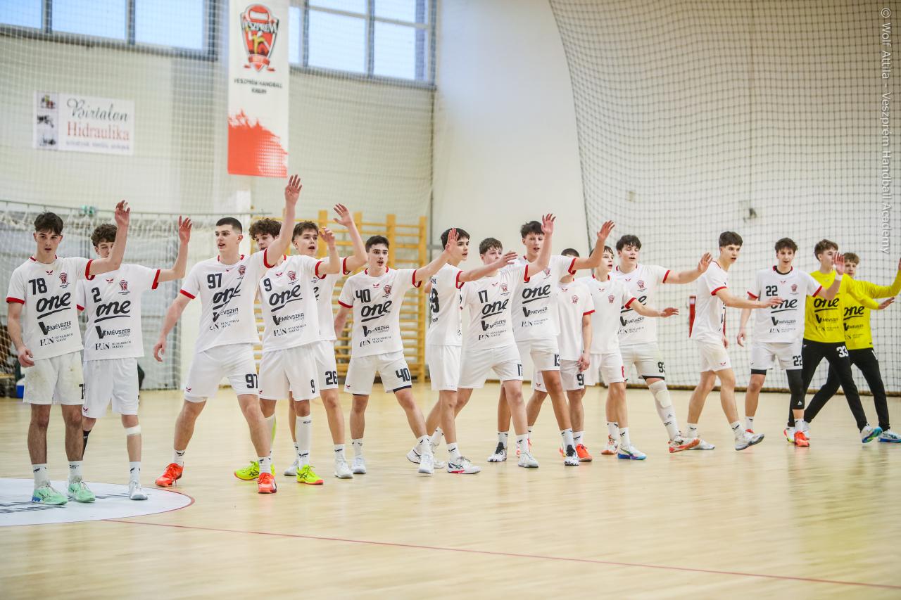 Az U16 I. osztály 12. fordulójában a Veszprém Handball Academy csapata az Agrofeed UNI Győr együttesét fogadta a DEVM Csarnokban. A találkozó remek iramban indult, ám a kezdeti lendületet mindkét oldalon több technikai hiba is árnyékolta. Az első öt percben két győri találat és egy veszprémi hétméteres gól született. A hektikus játék továbbra is megmaradt, a mérkőzés képe eleinte nem változott jelentősen, ám ezt követően a hazai lövések is egyre pontosabbá váltak. Átlövésekből Takács és Bedenek is többször betalált, így a félidő közepére egy–két gólos veszprémi előny alakult ki. Ezt követően a veszprémi védekezés még fókuszáltabb lett, több labdaszerzés után pedig Békési Péter ziccer góljaival akadémistáink tovább növelték a különbséget, miközben a győri védekezés is fáradni látszott. A játék képe az első harminc perc végére már nem változott: a veszprémi fiúk lerohanásokkal tíz gól fölé növelték előnyüket, és végül tizenkét gólos vezetéssel vonulhattak pihenőre (22:10, 30. perc).
