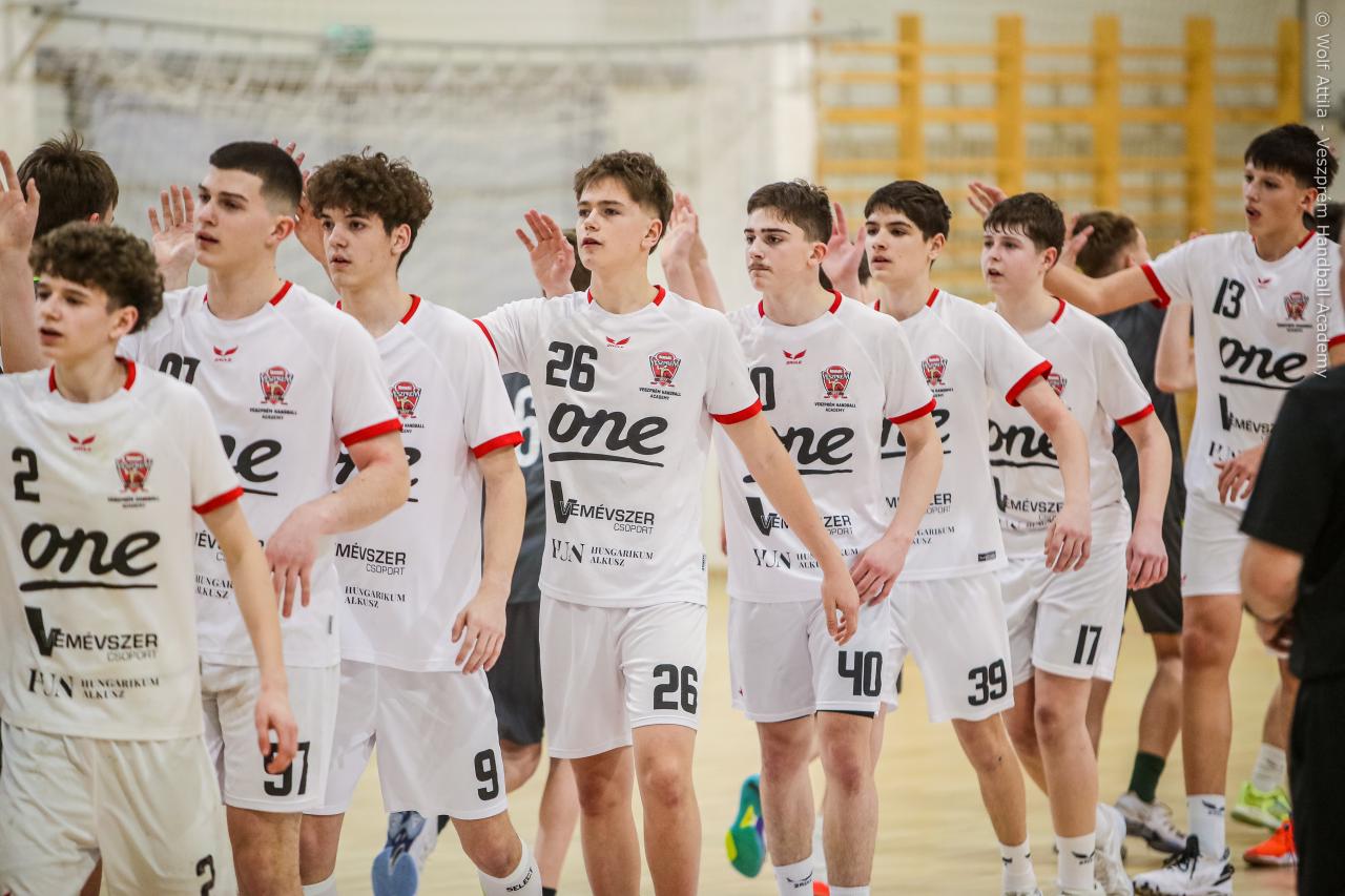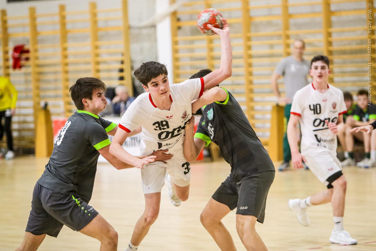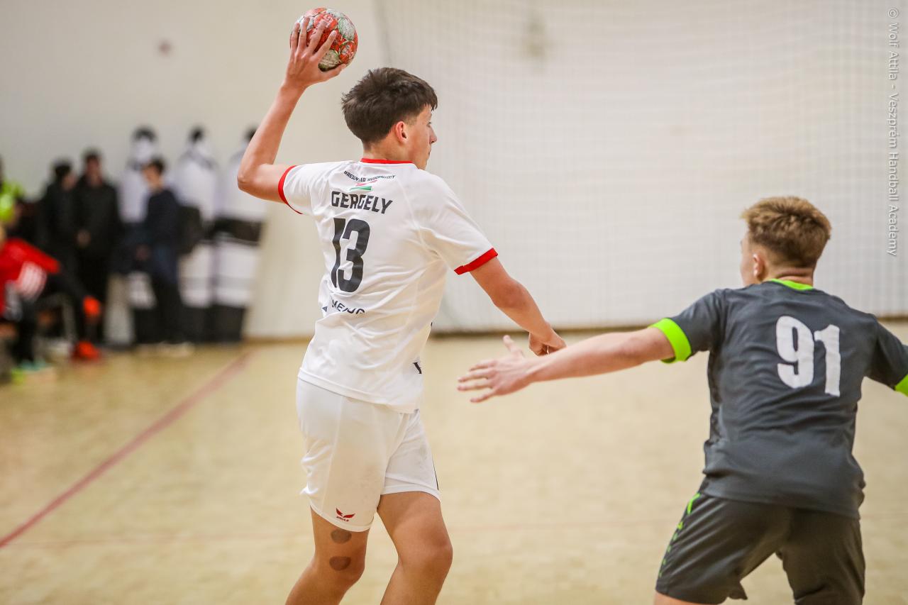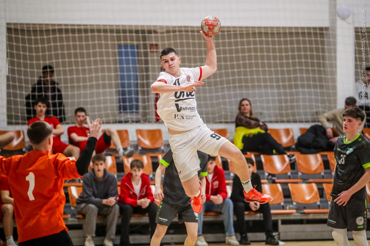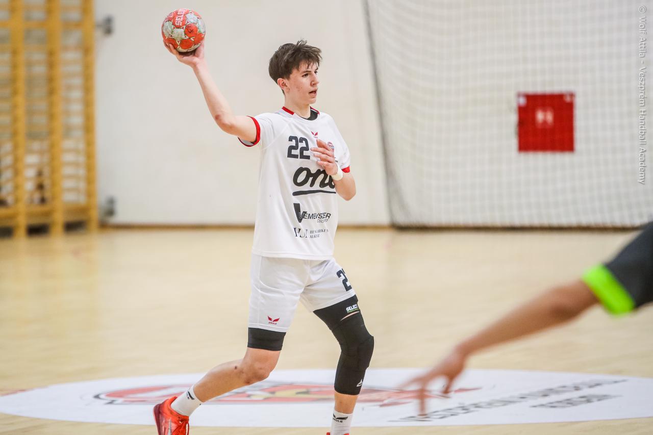 Az U16 I. osztály 12. fordulójában a Veszprém Handball Academy csapata az Agrofeed UNI Győr együttesét fogadta a DEVM Csarnokban. A találkozó remek iramban indult, ám a kezdeti lendületet mindkét oldalon több technikai hiba is árnyékolta. Az első öt percben két győri találat és egy veszprémi hétméteres gól született. A hektikus játék továbbra is megmaradt, a mérkőzés képe eleinte nem változott jelentősen, ám ezt követően a hazai lövések is egyre pontosabbá váltak. Átlövésekből Takács és Bedenek is többször betalált, így a félidő közepére egy–két gólos veszprémi előny alakult ki. Ezt követően a veszprémi védekezés még fókuszáltabb lett, több labdaszerzés után pedig Békési Péter ziccer góljaival akadémistáink tovább növelték a különbséget, miközben a győri védekezés is fáradni látszott. A játék képe az első harminc perc végére már nem változott: a veszprémi fiúk lerohanásokkal tíz gól fölé növelték előnyüket, és végül tizenkét gólos vezetéssel vonulhattak pihenőre (22:10, 30. perc).