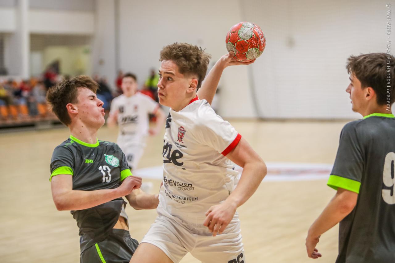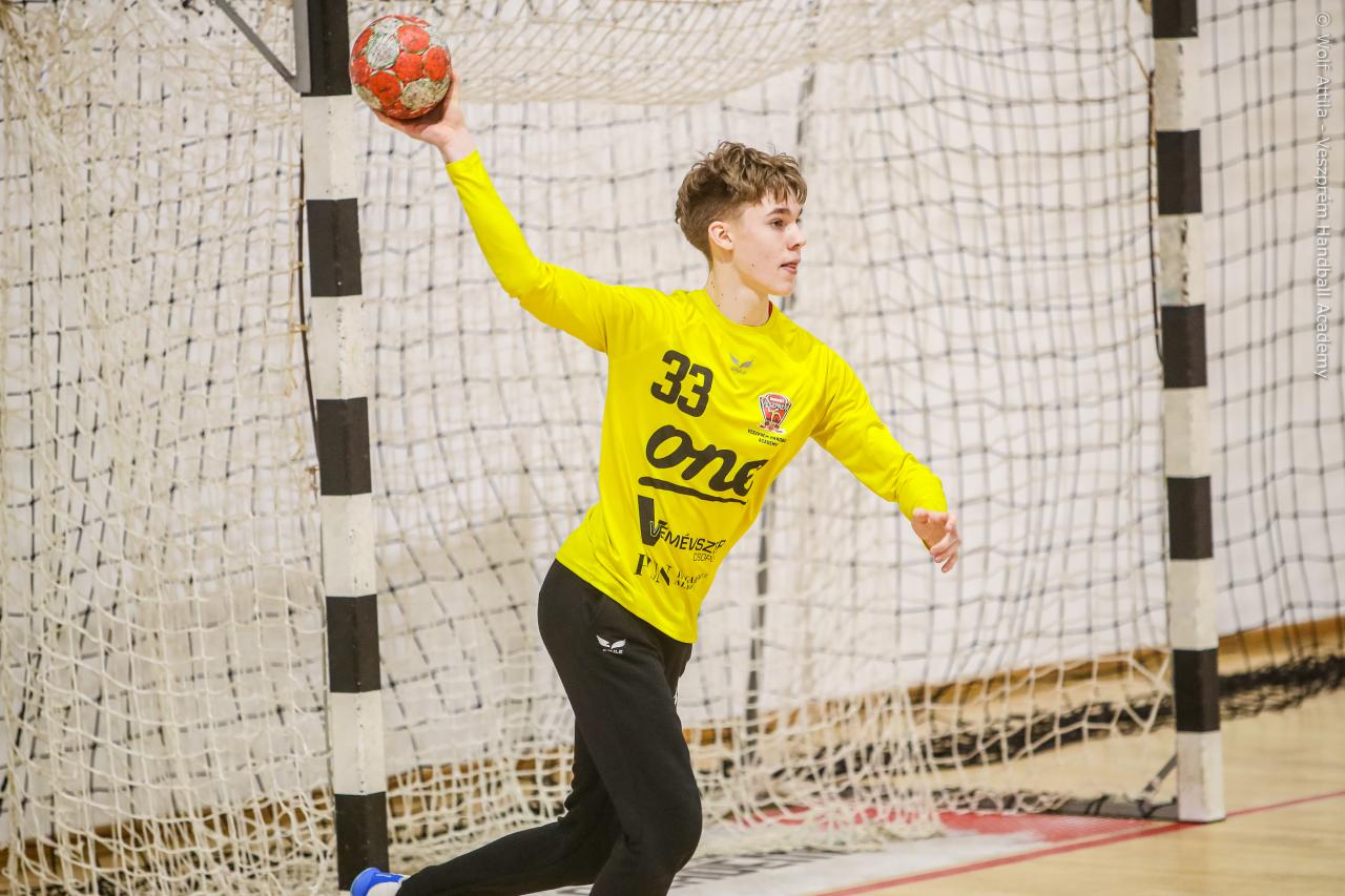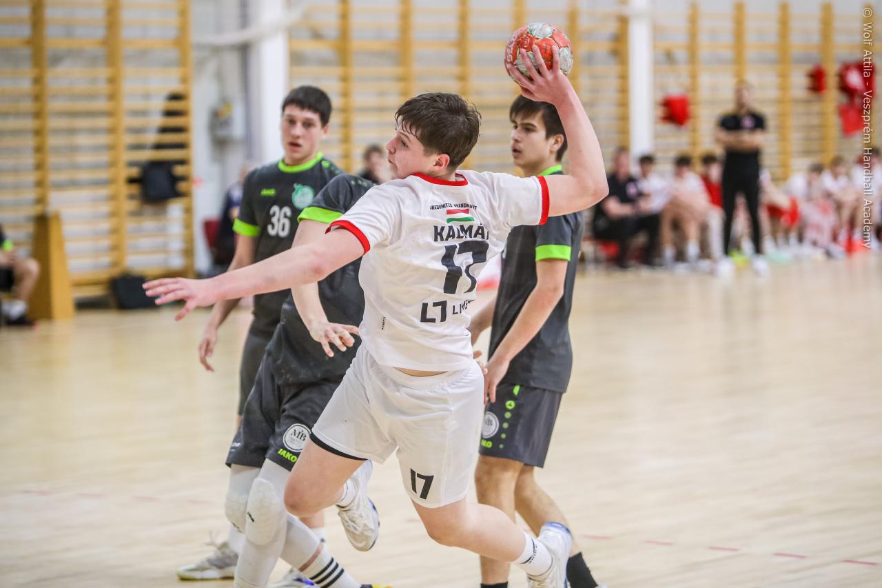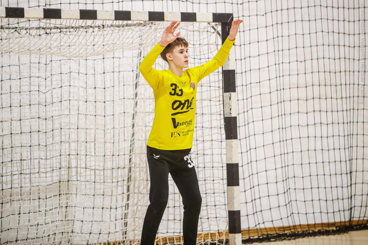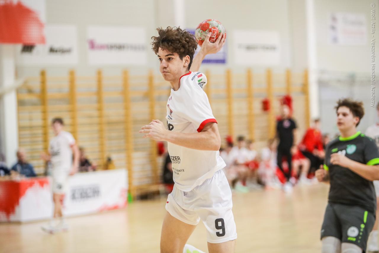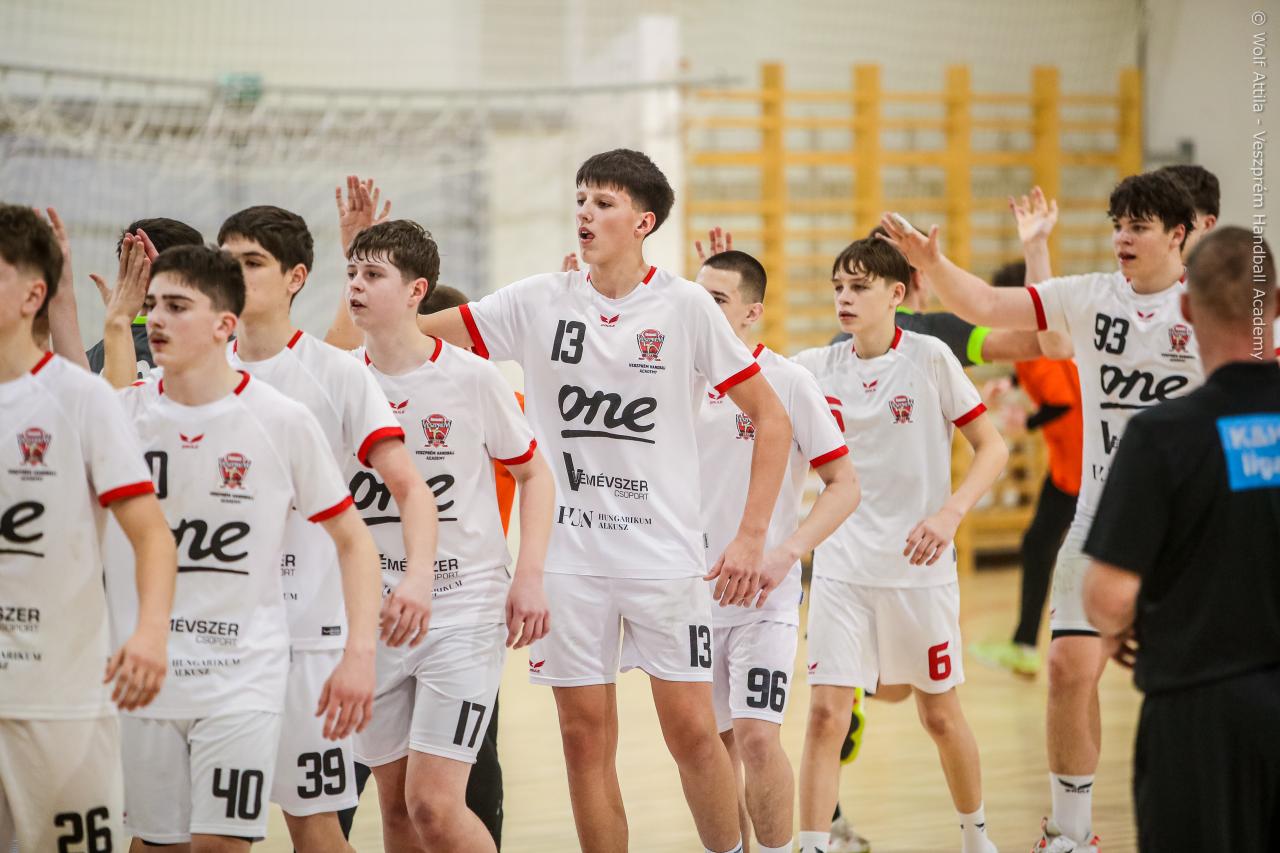 Az U16 I. osztály 12. fordulójában a Veszprém Handball Academy csapata az Agrofeed UNI Győr együttesét fogadta a DEVM Csarnokban. A találkozó remek iramban indult, ám a kezdeti lendületet mindkét oldalon több technikai hiba is árnyékolta. Az első öt percben két győri találat és egy veszprémi hétméteres gól született. A hektikus játék továbbra is megmaradt, a mérkőzés képe eleinte nem változott jelentősen, ám ezt követően a hazai lövések is egyre pontosabbá váltak. Átlövésekből Takács és Bedenek is többször betalált, így a félidő közepére egy–két gólos veszprémi előny alakult ki. Ezt követően a veszprémi védekezés még fókuszáltabb lett, több labdaszerzés után pedig Békési Péter ziccer góljaival akadémistáink tovább növelték a különbséget, miközben a győri védekezés is fáradni látszott. A játék képe az első harminc perc végére már nem változott: a veszprémi fiúk lerohanásokkal tíz gól fölé növelték előnyüket, és végül tizenkét gólos vezetéssel vonulhattak pihenőre (22:10, 30. perc).