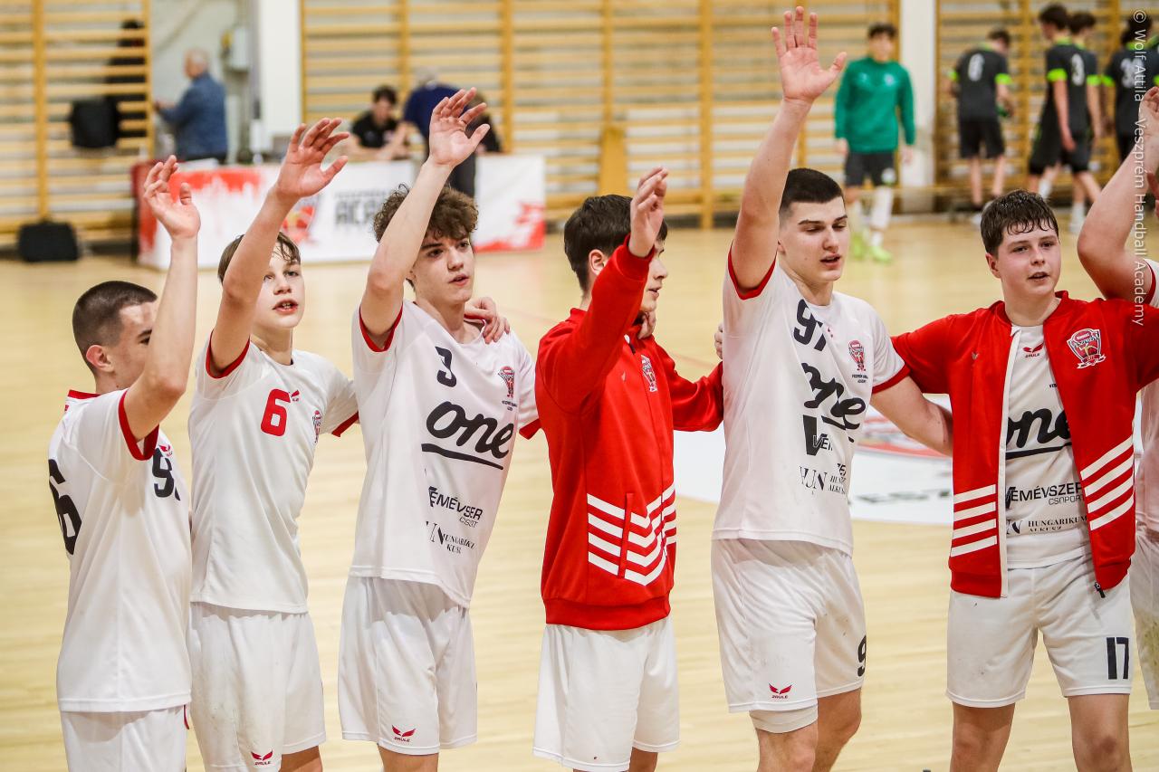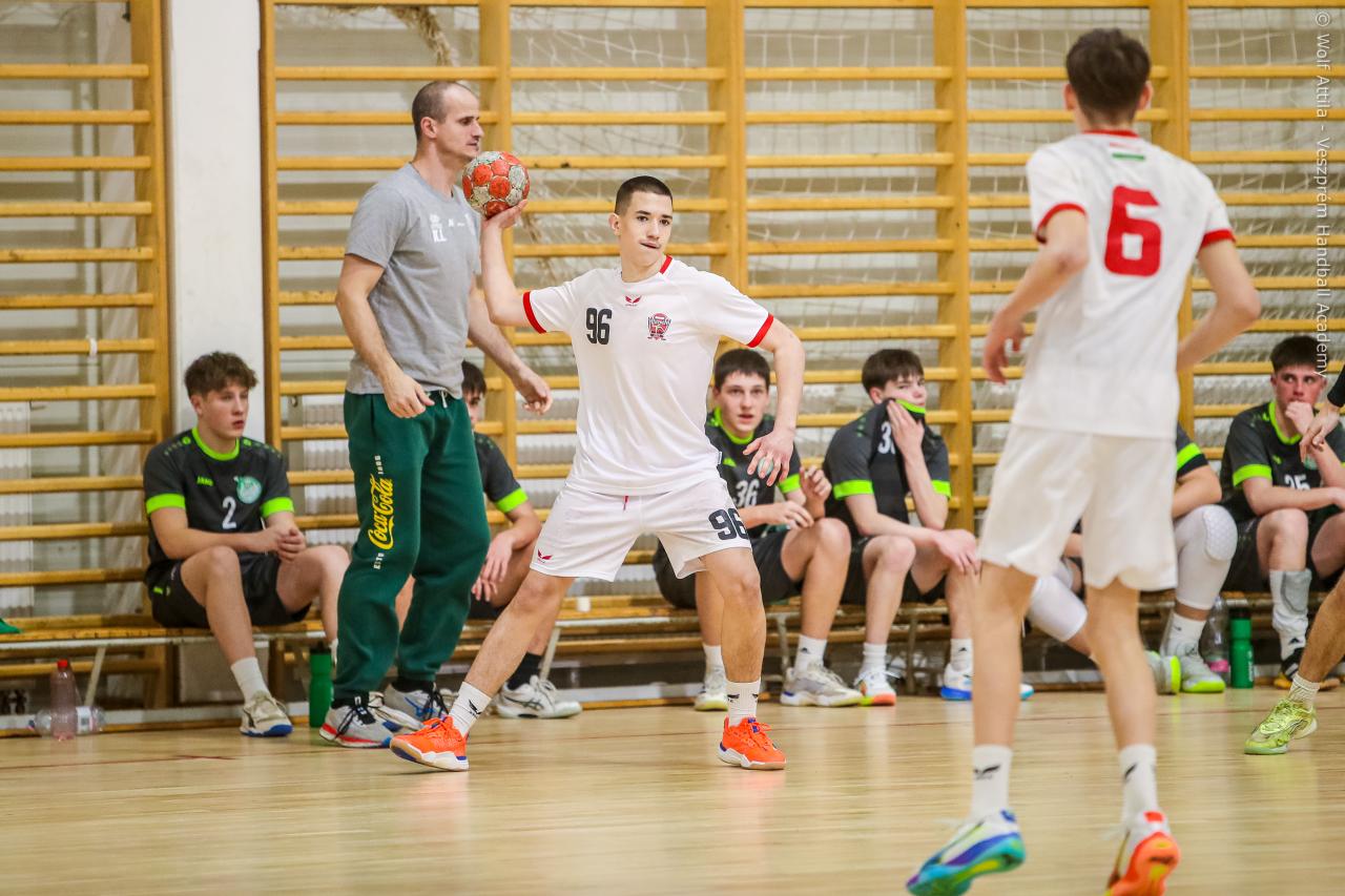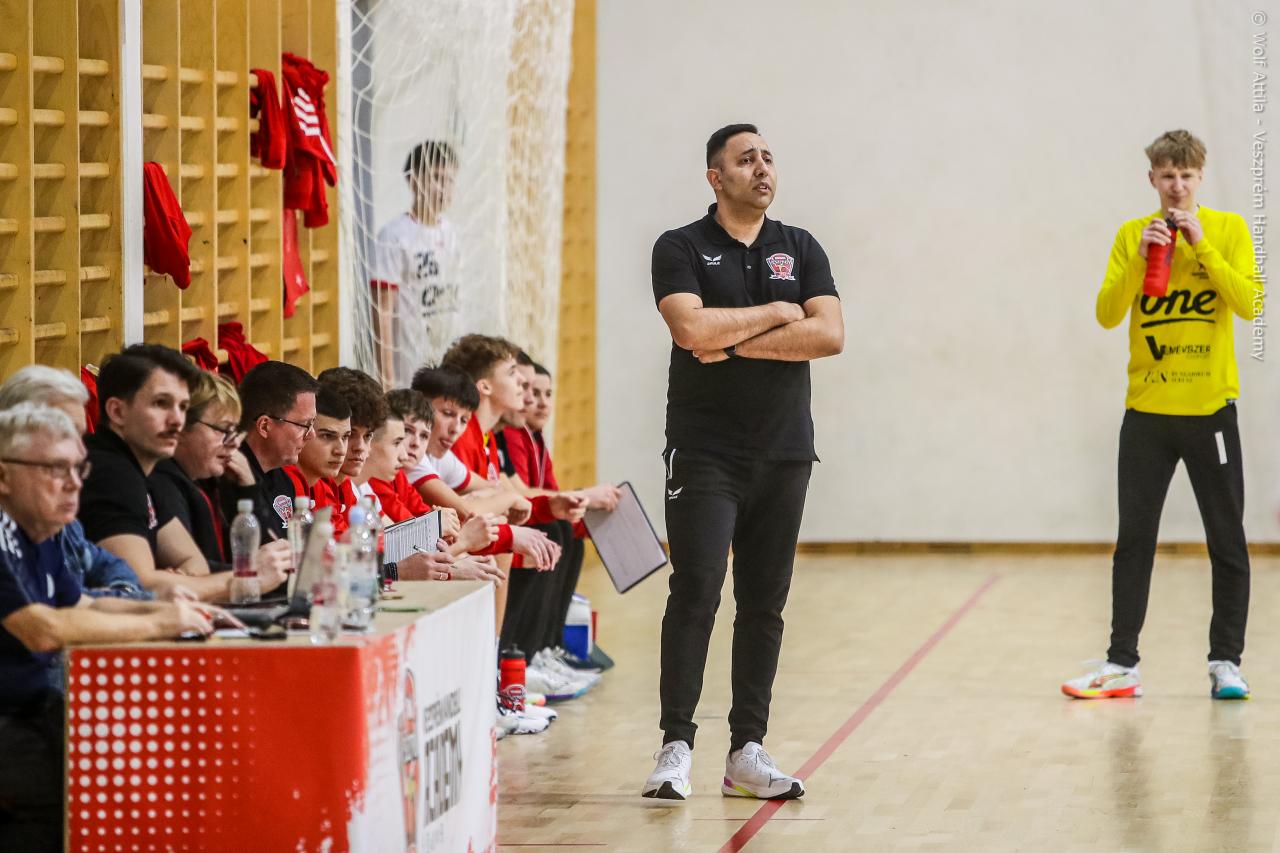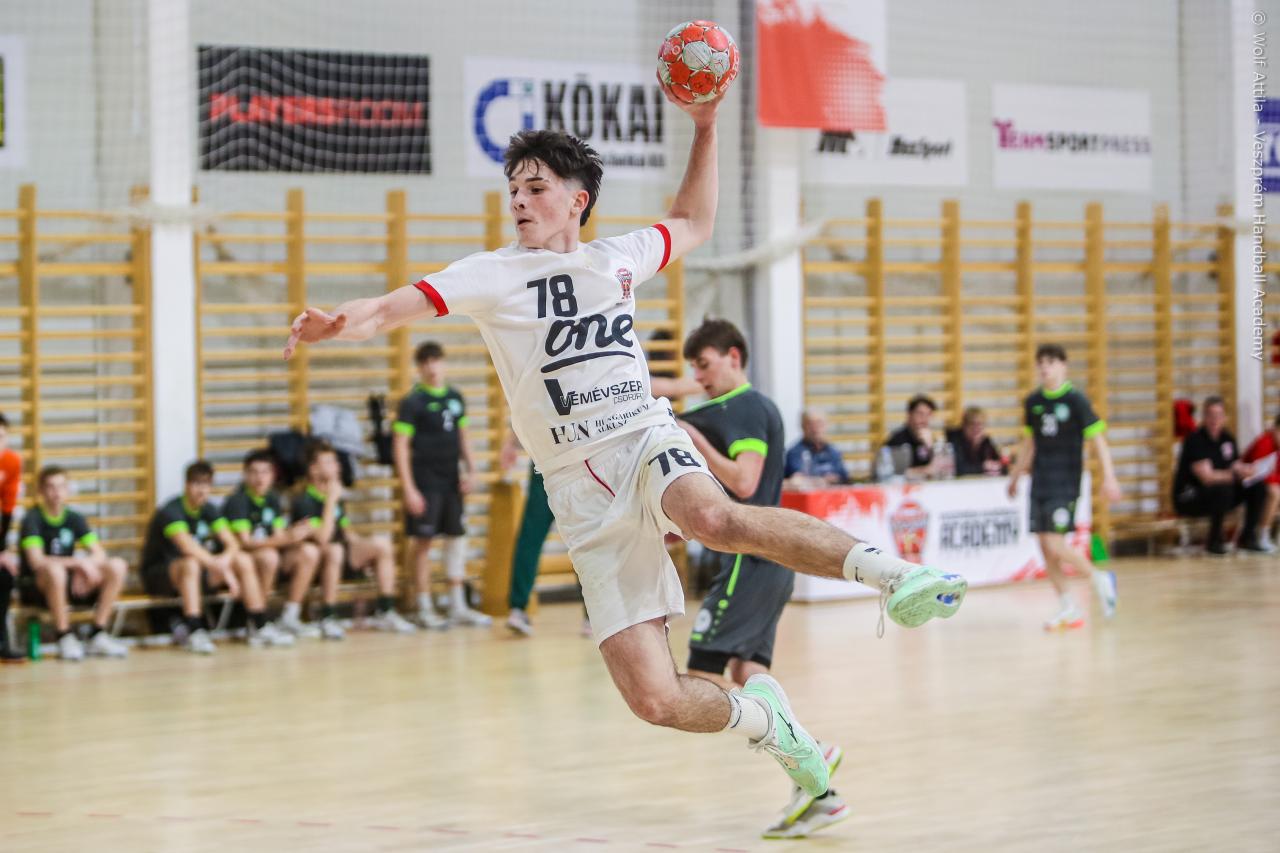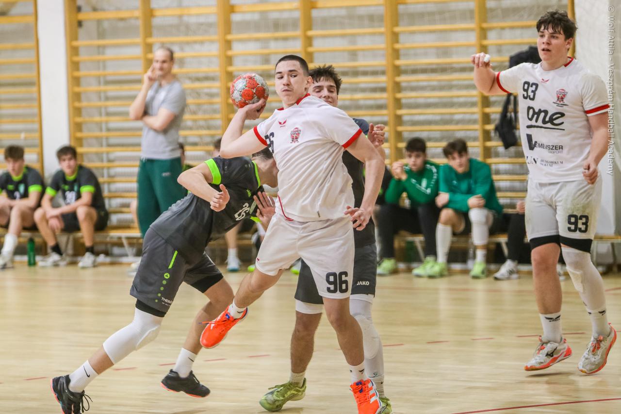 Az U16 I. osztály 12. fordulójában a Veszprém Handball Academy csapata az Agrofeed UNI Győr együttesét fogadta a DEVM Csarnokban. A találkozó remek iramban indult, ám a kezdeti lendületet mindkét oldalon több technikai hiba is árnyékolta. Az első öt percben két győri találat és egy veszprémi hétméteres gól született. A hektikus játék továbbra is megmaradt, a mérkőzés képe eleinte nem változott jelentősen, ám ezt követően a hazai lövések is egyre pontosabbá váltak. Átlövésekből Takács és Bedenek is többször betalált, így a félidő közepére egy–két gólos veszprémi előny alakult ki. Ezt követően a veszprémi védekezés még fókuszáltabb lett, több labdaszerzés után pedig Békési Péter ziccer góljaival akadémistáink tovább növelték a különbséget, miközben a győri védekezés is fáradni látszott. A játék képe az első harminc perc végére már nem változott: a veszprémi fiúk lerohanásokkal tíz gól fölé növelték előnyüket, és végül tizenkét gólos vezetéssel vonulhattak pihenőre (22:10, 30. perc).