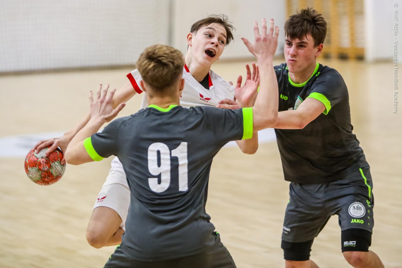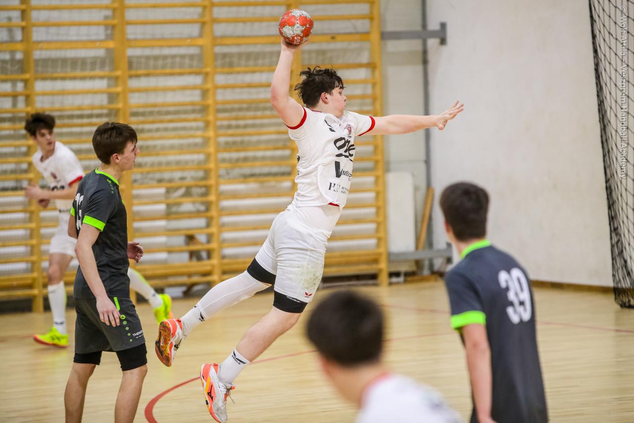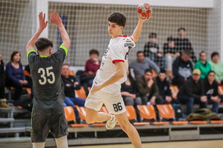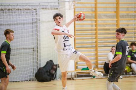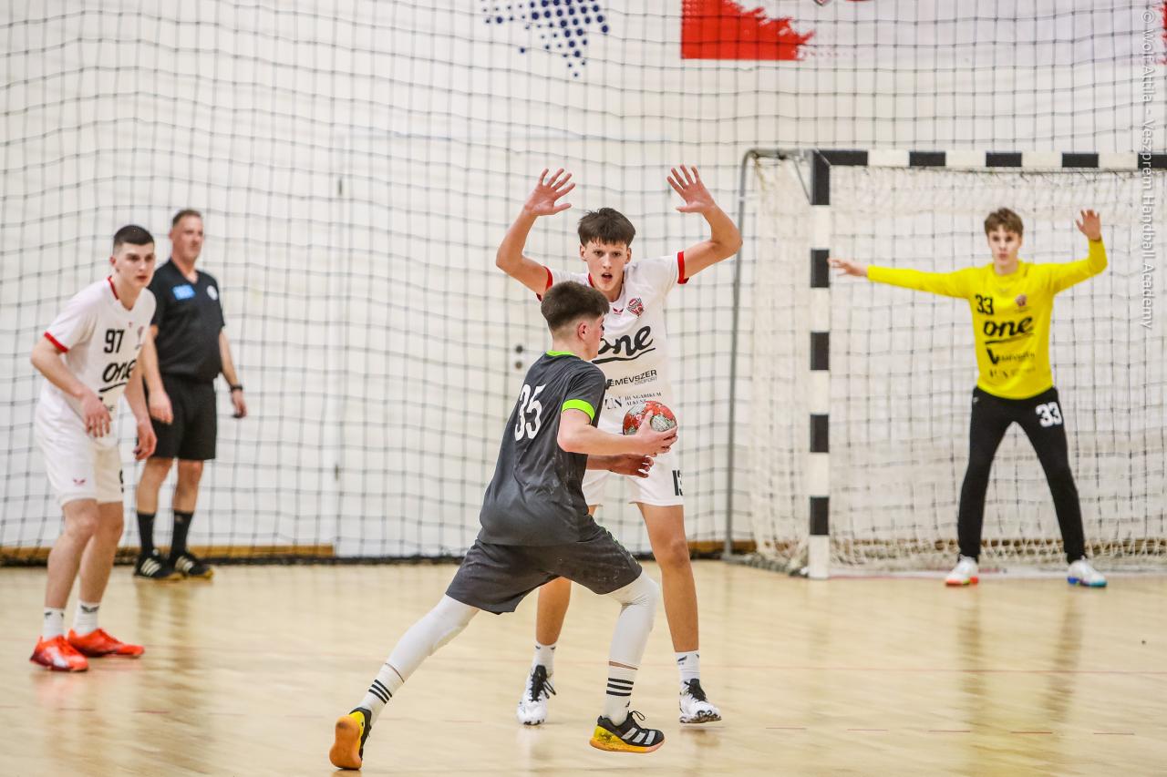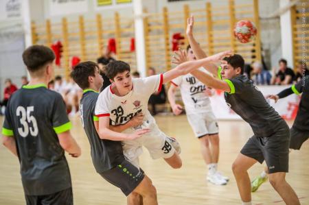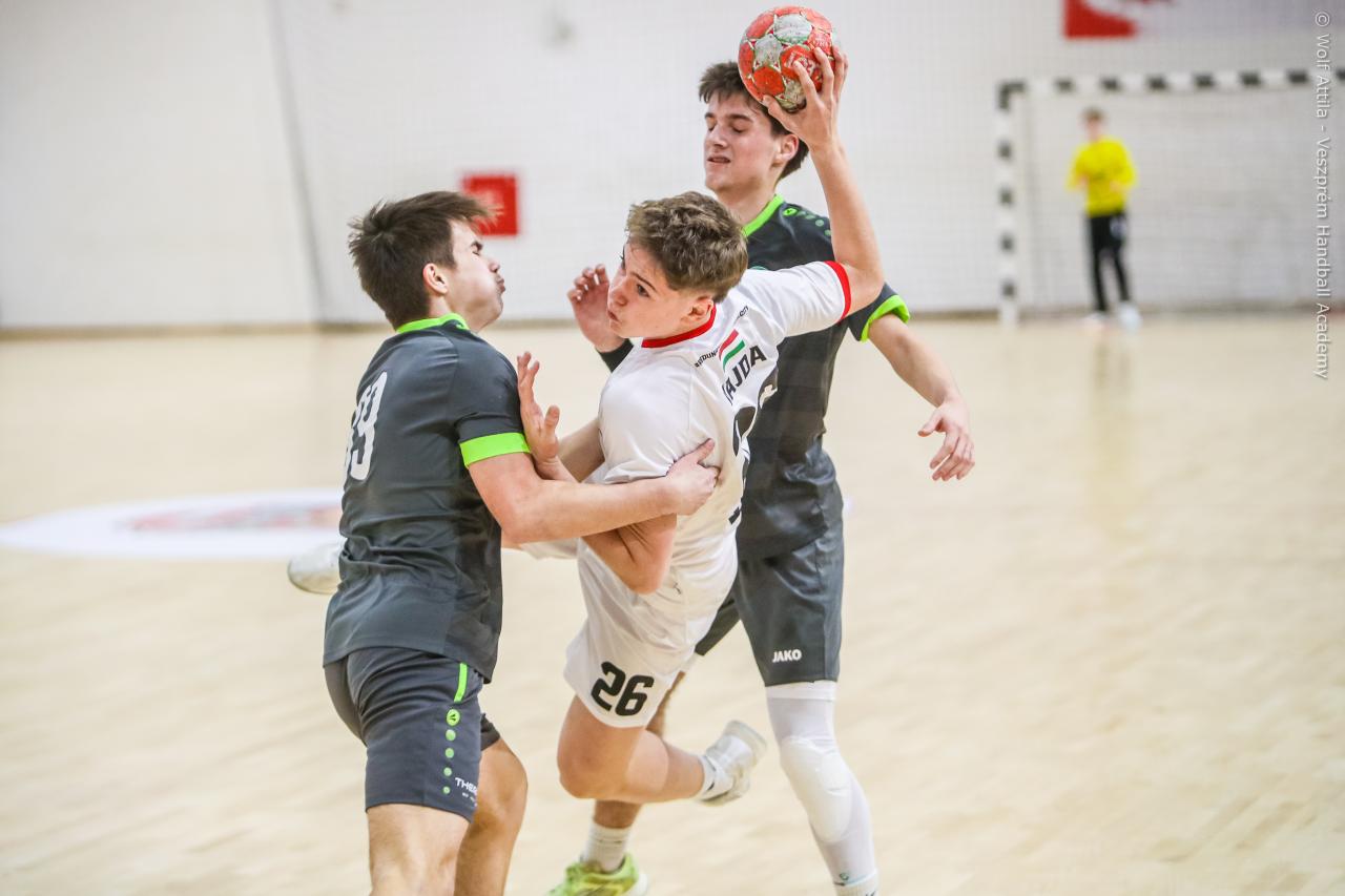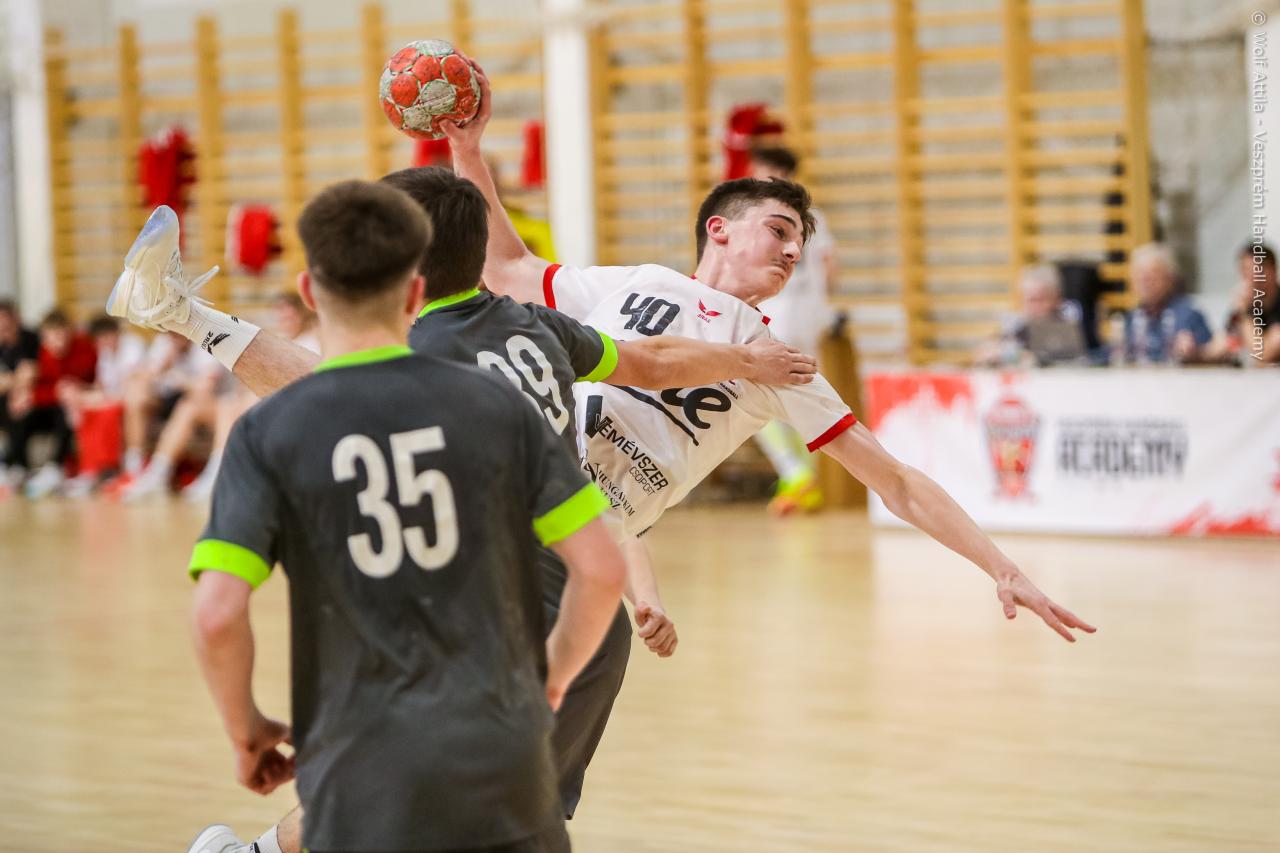 Az U16 I. osztály 12. fordulójában a Veszprém Handball Academy csapata az Agrofeed UNI Győr együttesét fogadta a DEVM Csarnokban. A találkozó remek iramban indult, ám a kezdeti lendületet mindkét oldalon több technikai hiba is árnyékolta. Az első öt percben két győri találat és egy veszprémi hétméteres gól született. A hektikus játék továbbra is megmaradt, a mérkőzés képe eleinte nem változott jelentősen, ám ezt követően a hazai lövések is egyre pontosabbá váltak. Átlövésekből Takács és Bedenek is többször betalált, így a félidő közepére egy–két gólos veszprémi előny alakult ki. Ezt követően a veszprémi védekezés még fókuszáltabb lett, több labdaszerzés után pedig Békési Péter ziccer góljaival akadémistáink tovább növelték a különbséget, miközben a győri védekezés is fáradni látszott. A játék képe az első harminc perc végére már nem változott: a veszprémi fiúk lerohanásokkal tíz gól fölé növelték előnyüket, és végül tizenkét gólos vezetéssel vonulhattak pihenőre (22:10, 30. perc).