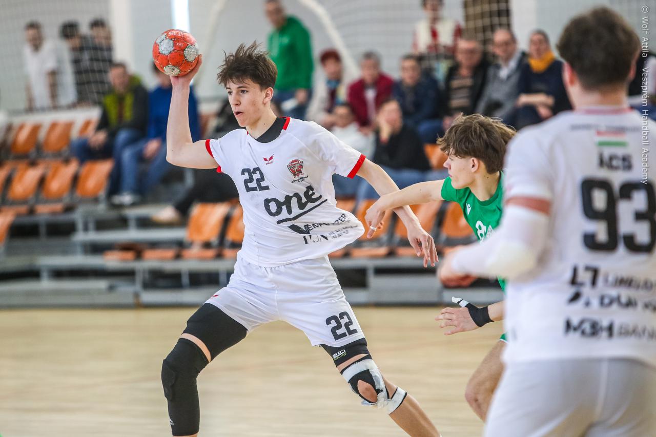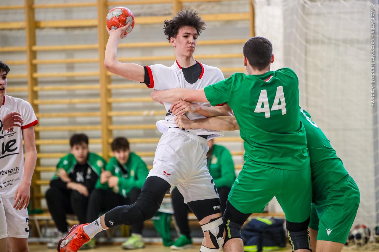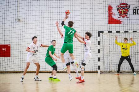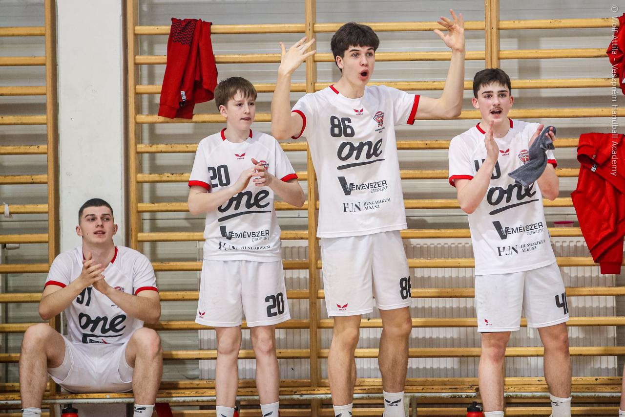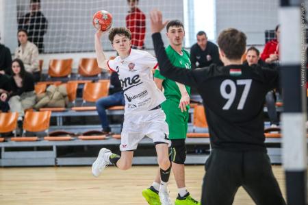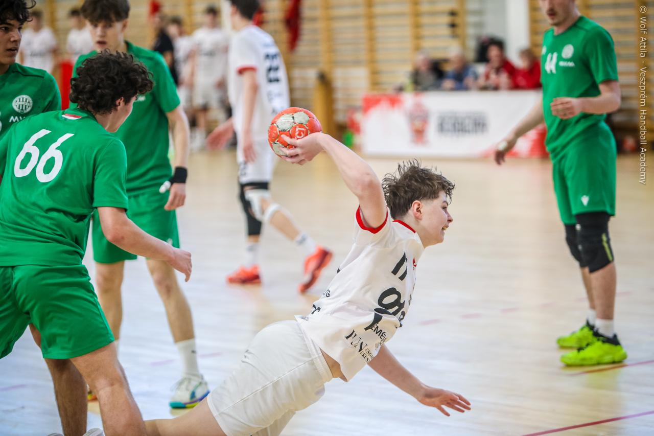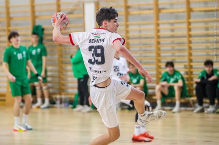 A Felsőház dobogójának harmadik helyét elfoglaló Fradi volt a vendégünk az U16 bajnokság rájátszásában. Egy jó ostromot követően az első perc letelte előtt behúztuk az első gólunkat, majd Novák első védésének is elismerően tapsolhattunk. Nem telt el sok idő, hogy az első kétperces kiállítást is kiosszák a játékvezetők: Békési ült le a kispadra. Nagyon jól ügyeskedtünk az emberhátrányban, hiszen a Fradi nem tudott gólt szerezni, cserébe nálunk Osváth lőtt, Novák hárított egyet, és majdnem 5 perc telt el, mire a vendégek behúzták első találatukat. Kisvártatva követte a második is, azonban egy hetesnek köszönhetően visszavettük a vezetést (7. perc, 3:2). Bedenek bár tovább növelte az előnyünket, Ács kiállítása után egy hetesnek és egy üreskapus gólnak köszönhetően visszaegyenlítettek a zöldek. A 12. percig tartani tudtuk a jó ütemet, hetesből is ziccerből is tovább kovácsoltuk az előnyünket, és két percnyi létszámfölénybe is kerültünk. Ez jó lehetőséget adott a 7. gólunk megszerzéséhez, ám utána megiramodott az FTC és egymás után háromszor is bevették a kapunkat, ezzel átvették a vezetést is. A játékidő negyedéig sikerült egalizálni, ekkor a Fradi is élt az időkéréssel (16. perc, 9-9). Hatékony volt a taktika egyeztetése hiszen újfent egy 3:0-s szériát hoztak, egy kétperces kiállítás törte meg a lendületüket. Ennek következtében sikerült apránként ledolgozni a különbséget, a 23. perc végére pedig ismét eggyel mentünk (13:12). A félidő fennmaradó részében jól álltuk az ostromot, de a Fradi folyamatosan a nyomunkban járt a gólok számában, az első játékrész lefújásakor megnyugtató 2 gólos fórral ment öltözőbe csapatunk (30. perc, 17:15).