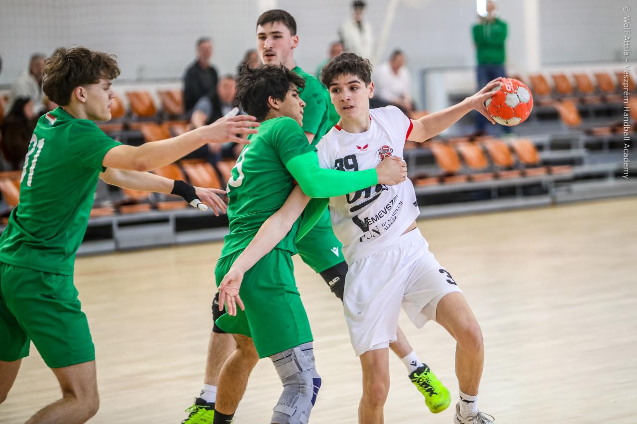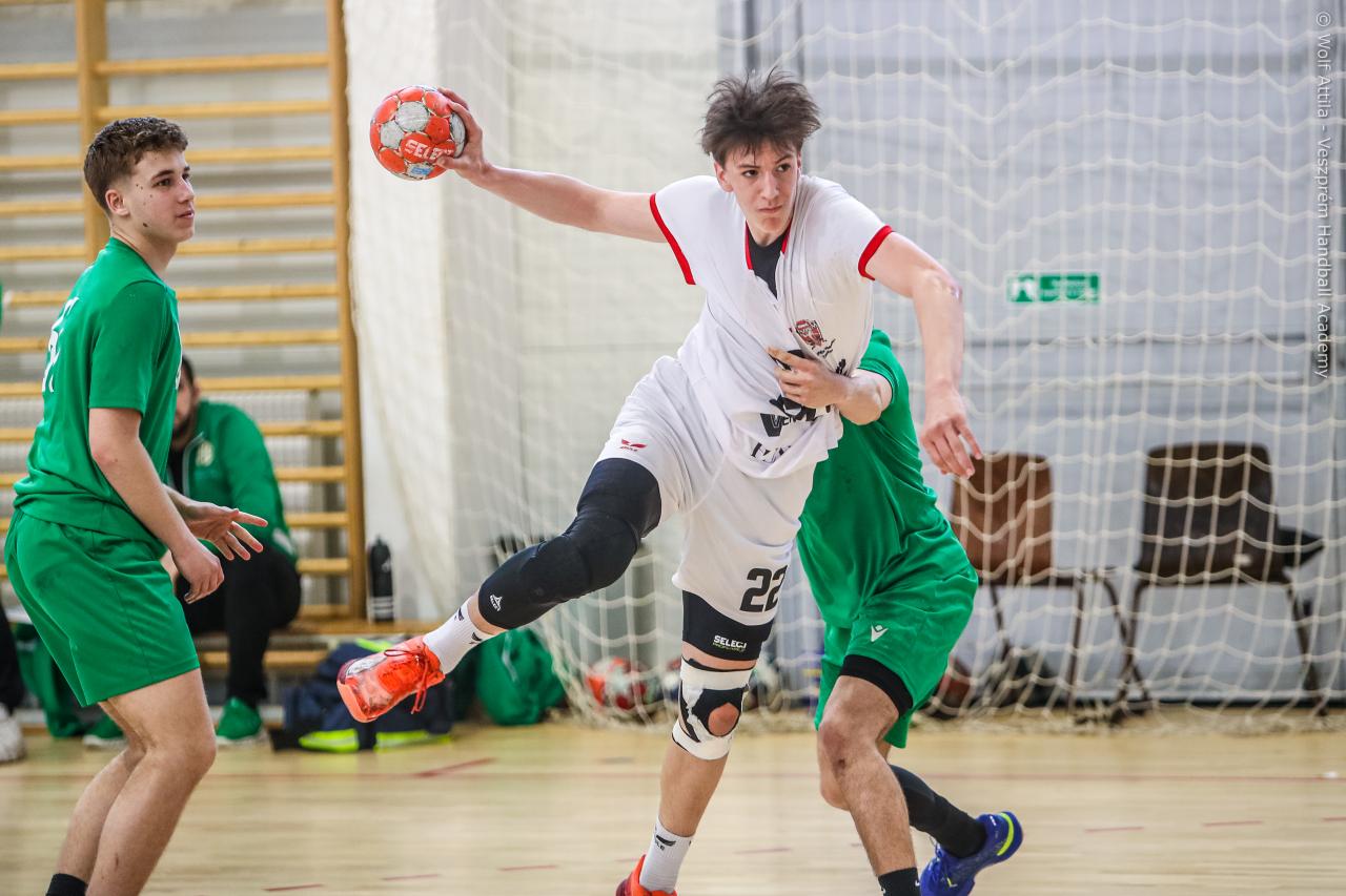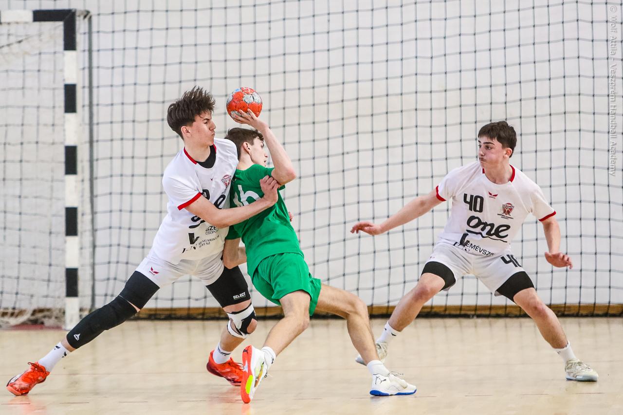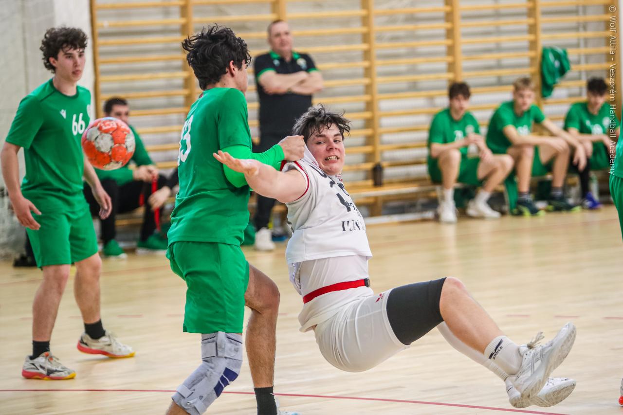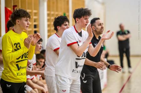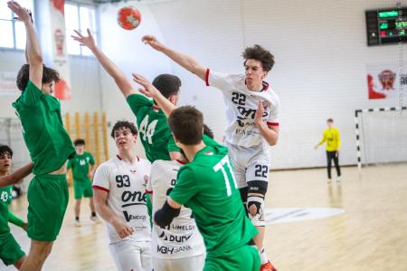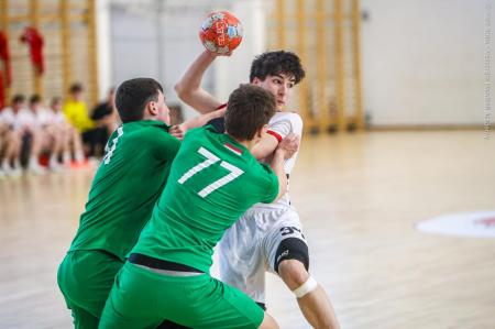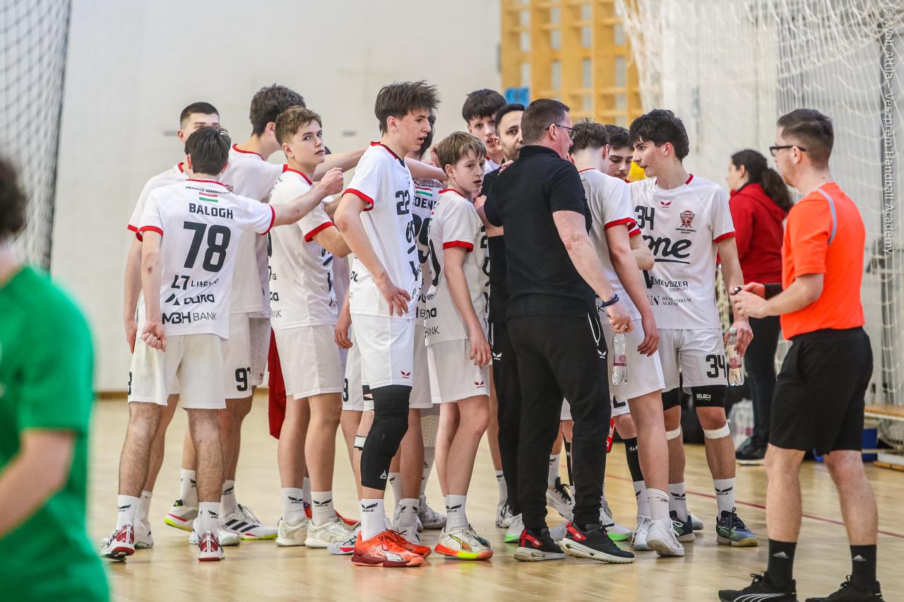 A Felsőház dobogójának harmadik helyét elfoglaló Fradi volt a vendégünk az U16 bajnokság rájátszásában. Egy jó ostromot követően az első perc letelte előtt behúztuk az első gólunkat, majd Novák első védésének is elismerően tapsolhattunk. Nem telt el sok idő, hogy az első kétperces kiállítást is kiosszák a játékvezetők: Békési ült le a kispadra. Nagyon jól ügyeskedtünk az emberhátrányban, hiszen a Fradi nem tudott gólt szerezni, cserébe nálunk Osváth lőtt, Novák hárított egyet, és majdnem 5 perc telt el, mire a vendégek behúzták első találatukat. Kisvártatva követte a második is, azonban egy hetesnek köszönhetően visszavettük a vezetést (7. perc, 3:2). Bedenek bár tovább növelte az előnyünket, Ács kiállítása után egy hetesnek és egy üreskapus gólnak köszönhetően visszaegyenlítettek a zöldek. A 12. percig tartani tudtuk a jó ütemet, hetesből is ziccerből is tovább kovácsoltuk az előnyünket, és két percnyi létszámfölénybe is kerültünk. Ez jó lehetőséget adott a 7. gólunk megszerzéséhez, ám utána megiramodott az FTC és egymás után háromszor is bevették a kapunkat, ezzel átvették a vezetést is. A játékidő negyedéig sikerült egalizálni, ekkor a Fradi is élt az időkéréssel (16. perc, 9-9). Hatékony volt a taktika egyeztetése hiszen újfent egy 3:0-s szériát hoztak, egy kétperces kiállítás törte meg a lendületüket. Ennek következtében sikerült apránként ledolgozni a különbséget, a 23. perc végére pedig ismét eggyel mentünk (13:12). A félidő fennmaradó részében jól álltuk az ostromot, de a Fradi folyamatosan a nyomunkban járt a gólok számában, az első játékrész lefújásakor megnyugtató 2 gólos fórral ment öltözőbe csapatunk (30. perc, 17:15).