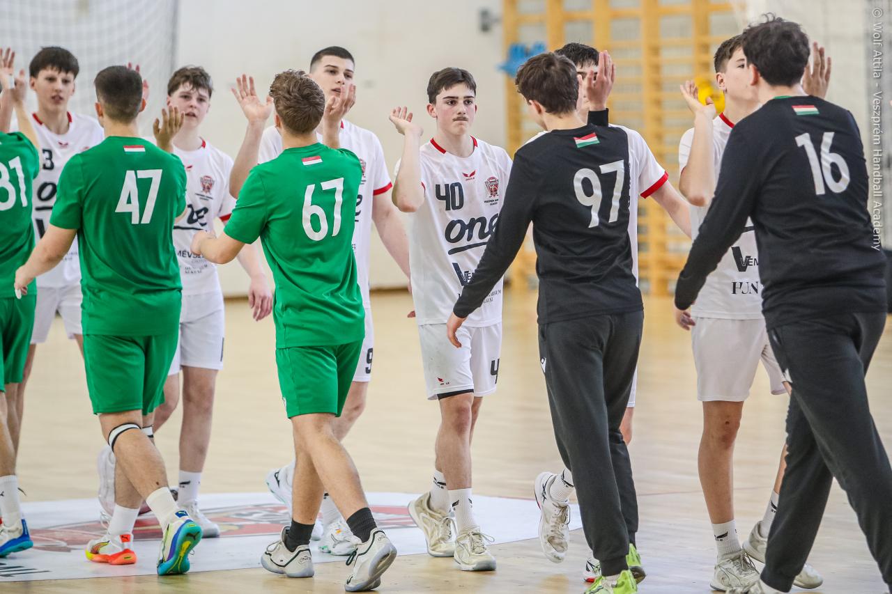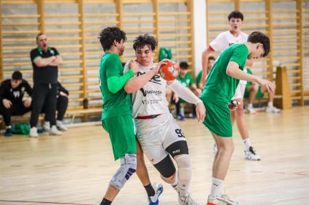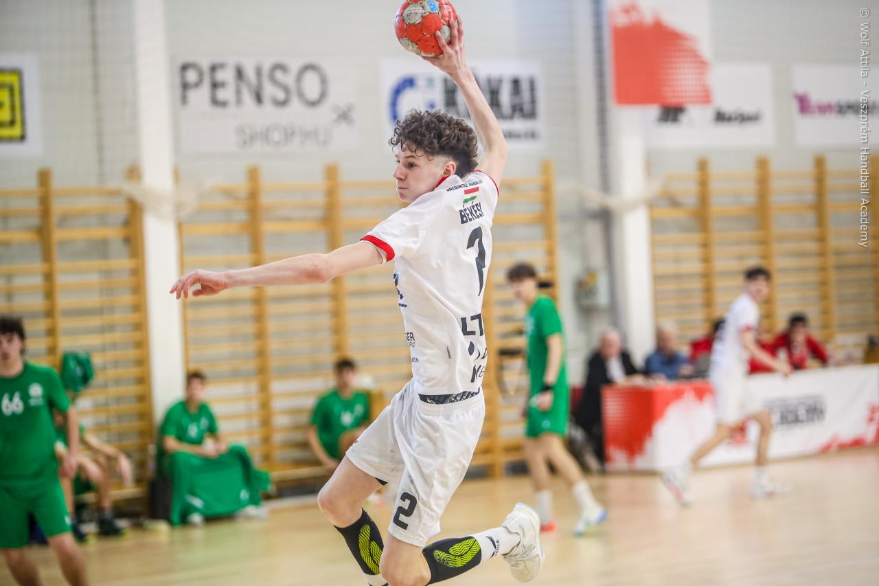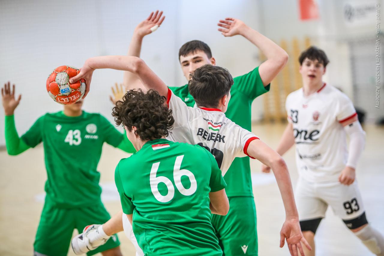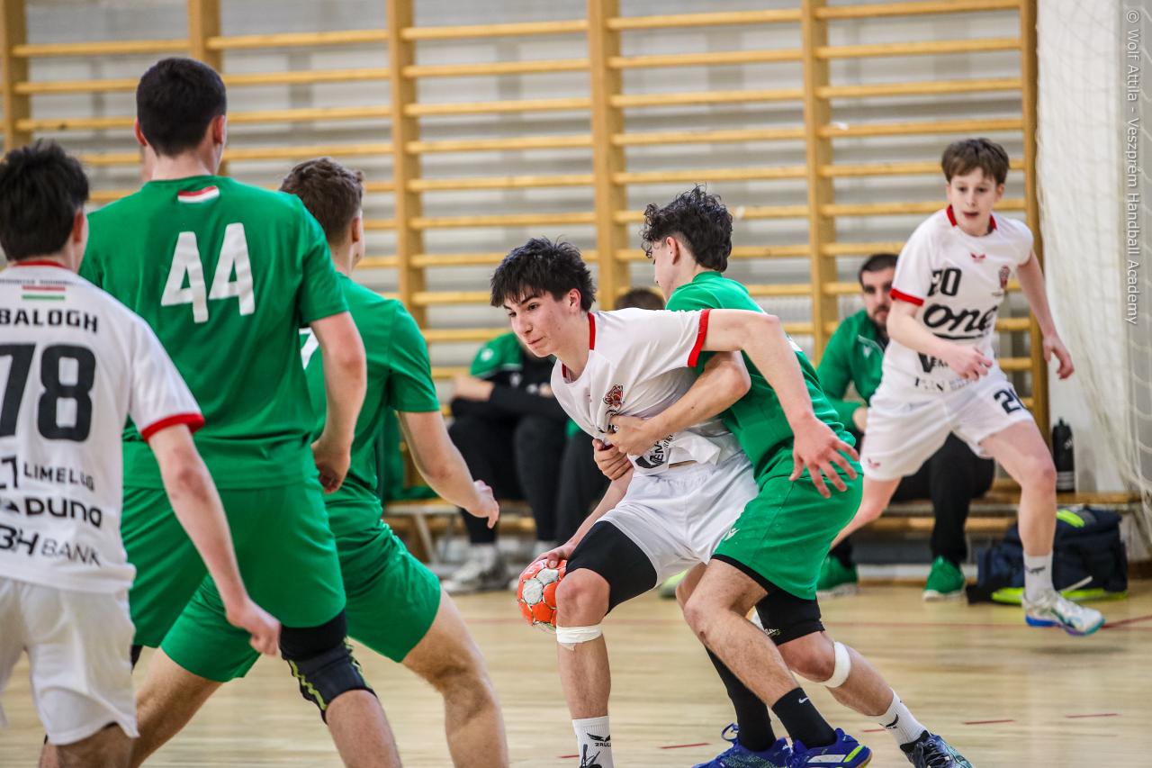 A Felsőház dobogójának harmadik helyét elfoglaló Fradi volt a vendégünk az U16 bajnokság rájátszásában. Egy jó ostromot követően az első perc letelte előtt behúztuk az első gólunkat, majd Novák első védésének is elismerően tapsolhattunk. Nem telt el sok idő, hogy az első kétperces kiállítást is kiosszák a játékvezetők: Békési ült le a kispadra. Nagyon jól ügyeskedtünk az emberhátrányban, hiszen a Fradi nem tudott gólt szerezni, cserébe nálunk Osváth lőtt, Novák hárított egyet, és majdnem 5 perc telt el, mire a vendégek behúzták első találatukat. Kisvártatva követte a második is, azonban egy hetesnek köszönhetően visszavettük a vezetést (7. perc, 3:2). Bedenek bár tovább növelte az előnyünket, Ács kiállítása után egy hetesnek és egy üreskapus gólnak köszönhetően visszaegyenlítettek a zöldek. A 12. percig tartani tudtuk a jó ütemet, hetesből is ziccerből is tovább kovácsoltuk az előnyünket, és két percnyi létszámfölénybe is kerültünk. Ez jó lehetőséget adott a 7. gólunk megszerzéséhez, ám utána megiramodott az FTC és egymás után háromszor is bevették a kapunkat, ezzel átvették a vezetést is. A játékidő negyedéig sikerült egalizálni, ekkor a Fradi is élt az időkéréssel (16. perc, 9-9). Hatékony volt a taktika egyeztetése hiszen újfent egy 3:0-s szériát hoztak, egy kétperces kiállítás törte meg a lendületüket. Ennek következtében sikerült apránként ledolgozni a különbséget, a 23. perc végére pedig ismét eggyel mentünk (13:12). A félidő fennmaradó részében jól álltuk az ostromot, de a Fradi folyamatosan a nyomunkban járt a gólok számában, az első játékrész lefújásakor megnyugtató 2 gólos fórral ment öltözőbe csapatunk (30. perc, 17:15).