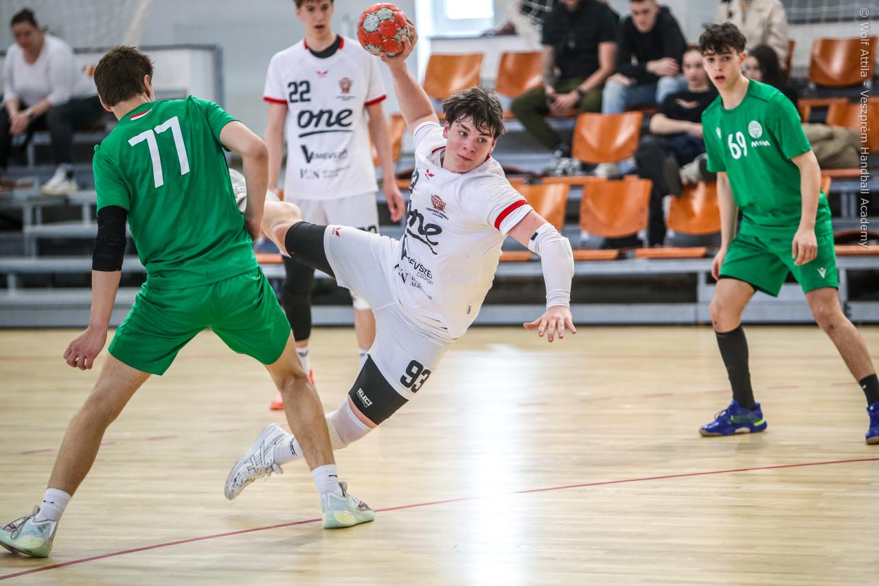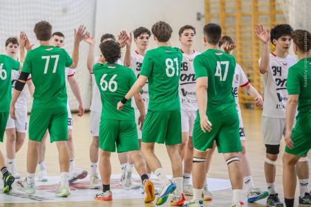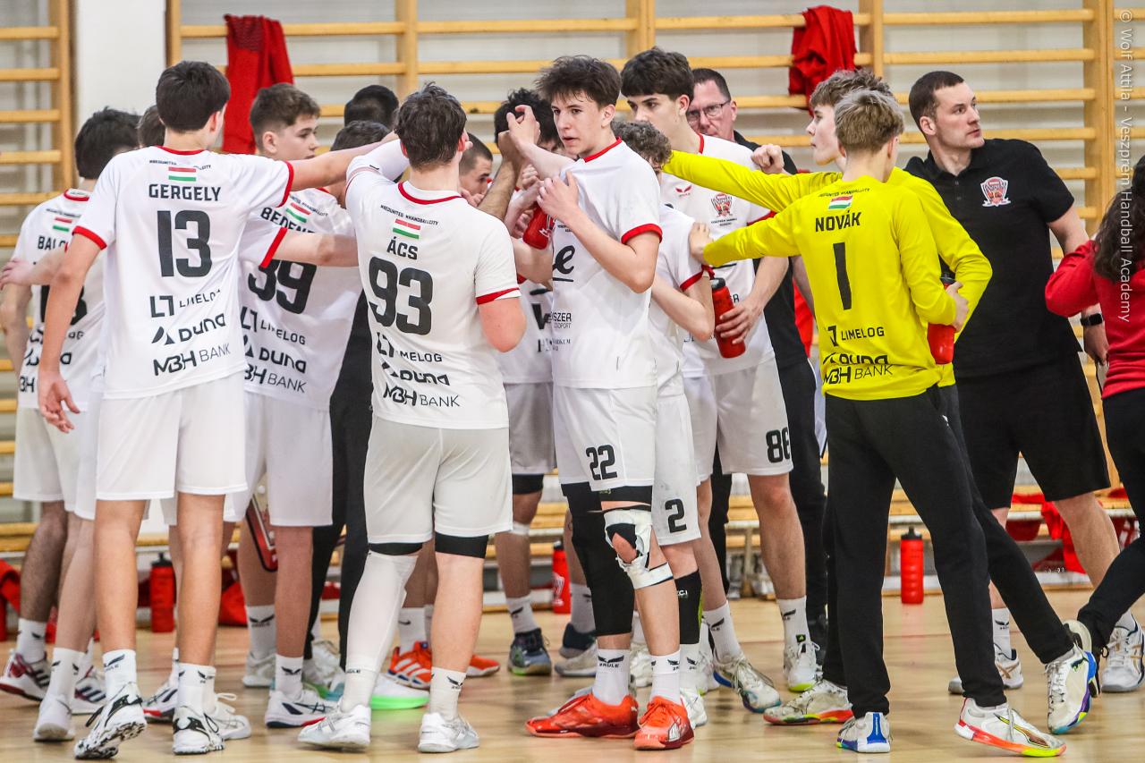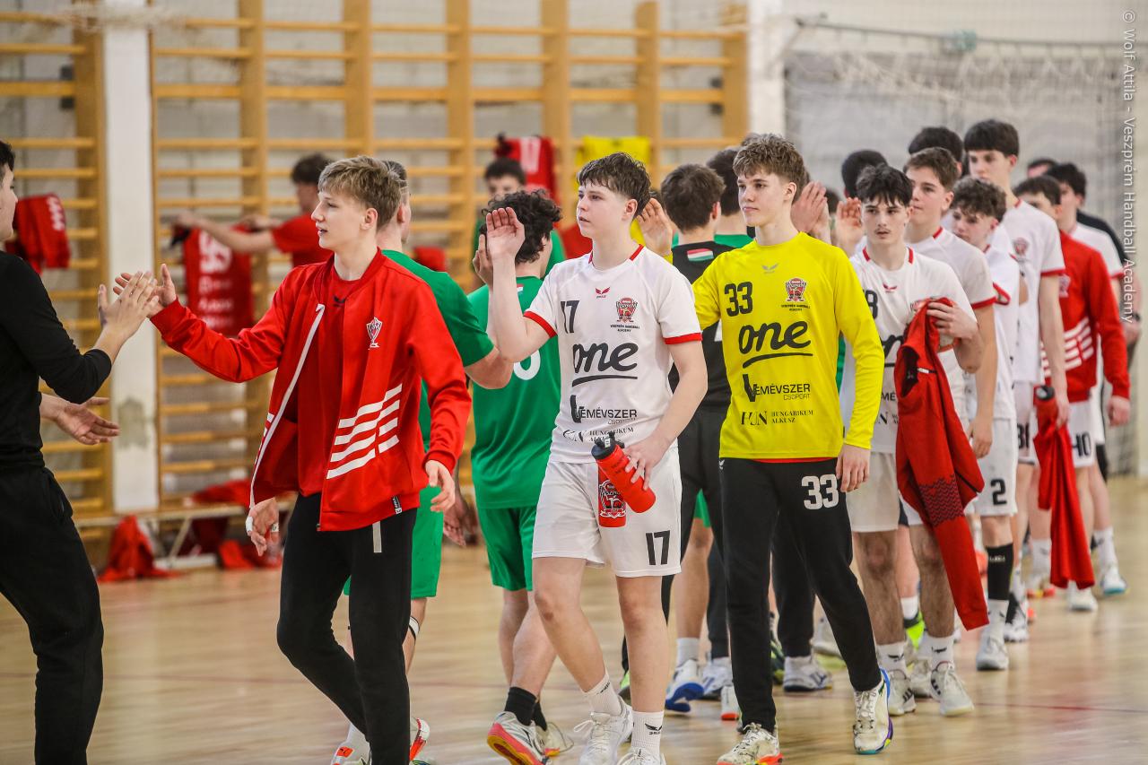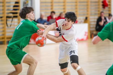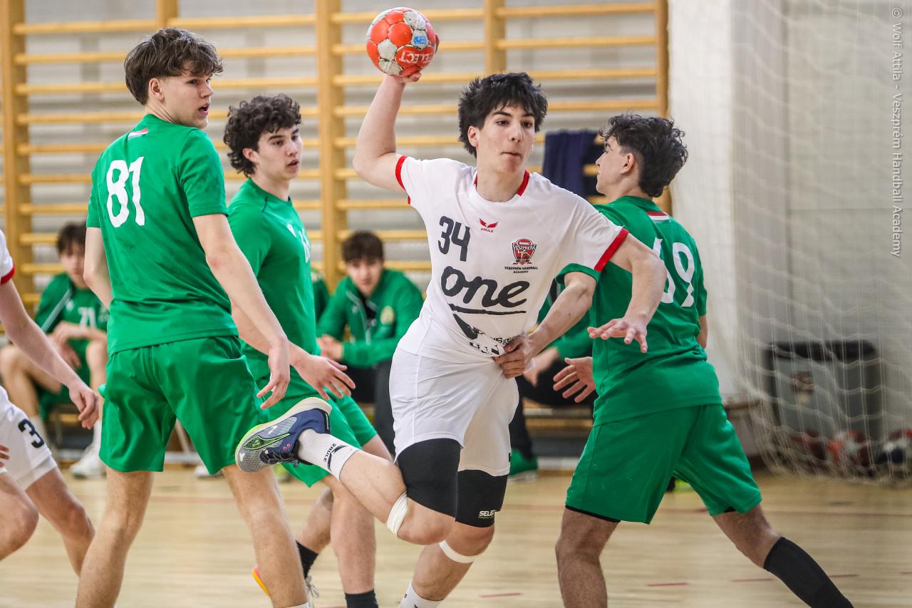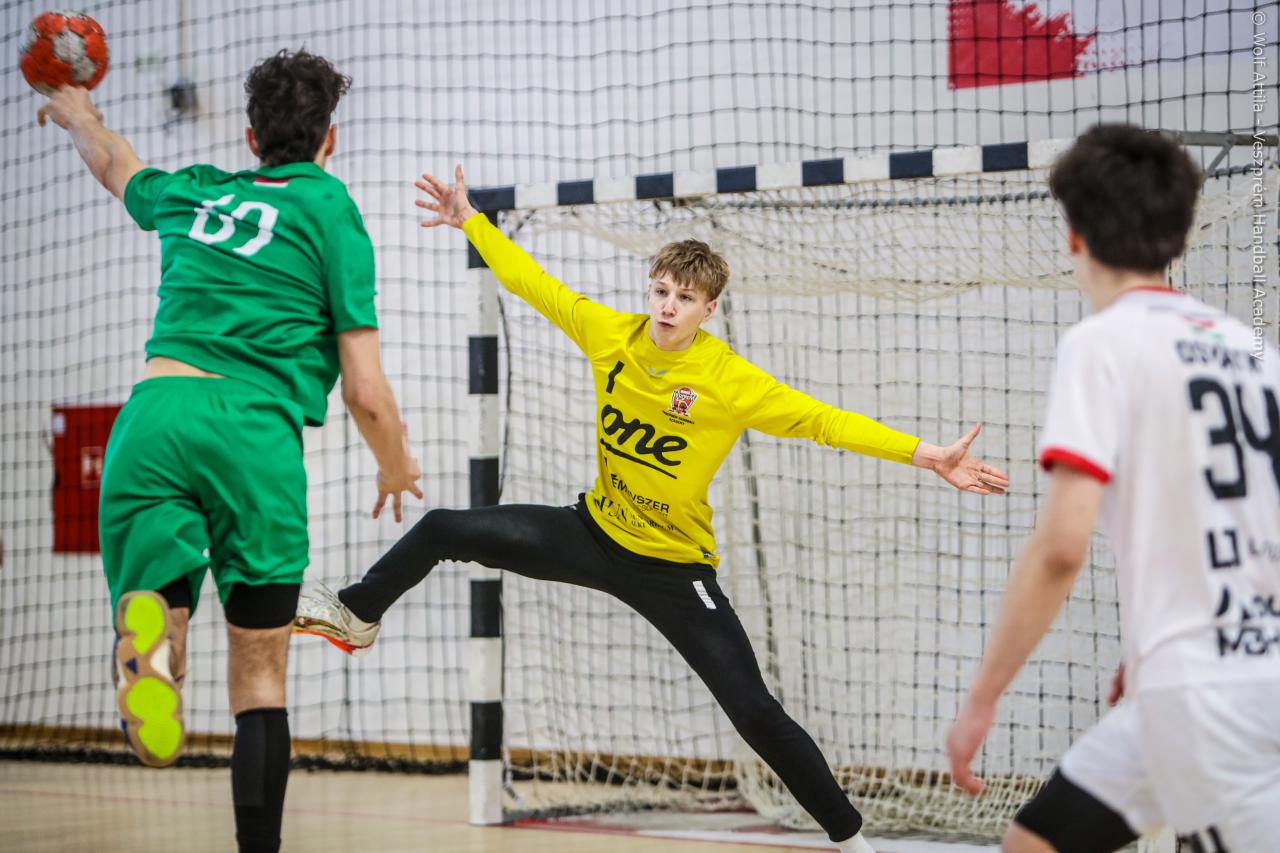 A Felsőház dobogójának harmadik helyét elfoglaló Fradi volt a vendégünk az U16 bajnokság rájátszásában. Egy jó ostromot követően az első perc letelte előtt behúztuk az első gólunkat, majd Novák első védésének is elismerően tapsolhattunk. Nem telt el sok idő, hogy az első kétperces kiállítást is kiosszák a játékvezetők: Békési ült le a kispadra. Nagyon jól ügyeskedtünk az emberhátrányban, hiszen a Fradi nem tudott gólt szerezni, cserébe nálunk Osváth lőtt, Novák hárított egyet, és majdnem 5 perc telt el, mire a vendégek behúzták első találatukat. Kisvártatva követte a második is, azonban egy hetesnek köszönhetően visszavettük a vezetést (7. perc, 3:2). Bedenek bár tovább növelte az előnyünket, Ács kiállítása után egy hetesnek és egy üreskapus gólnak köszönhetően visszaegyenlítettek a zöldek. A 12. percig tartani tudtuk a jó ütemet, hetesből is ziccerből is tovább kovácsoltuk az előnyünket, és két percnyi létszámfölénybe is kerültünk. Ez jó lehetőséget adott a 7. gólunk megszerzéséhez, ám utána megiramodott az FTC és egymás után háromszor is bevették a kapunkat, ezzel átvették a vezetést is. A játékidő negyedéig sikerült egalizálni, ekkor a Fradi is élt az időkéréssel (16. perc, 9-9). Hatékony volt a taktika egyeztetése hiszen újfent egy 3:0-s szériát hoztak, egy kétperces kiállítás törte meg a lendületüket. Ennek következtében sikerült apránként ledolgozni a különbséget, a 23. perc végére pedig ismét eggyel mentünk (13:12). A félidő fennmaradó részében jól álltuk az ostromot, de a Fradi folyamatosan a nyomunkban járt a gólok számában, az első játékrész lefújásakor megnyugtató 2 gólos fórral ment öltözőbe csapatunk (30. perc, 17:15).