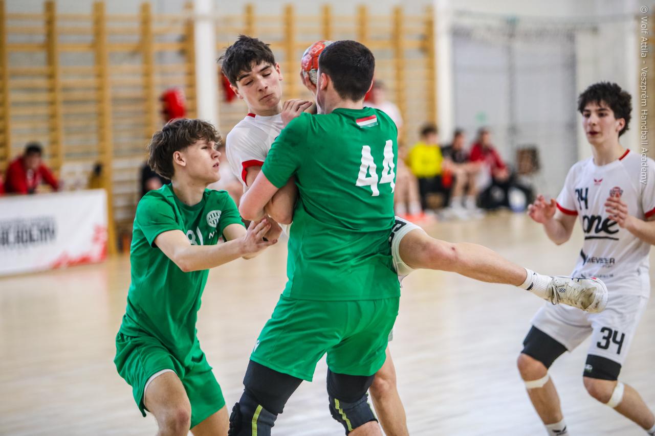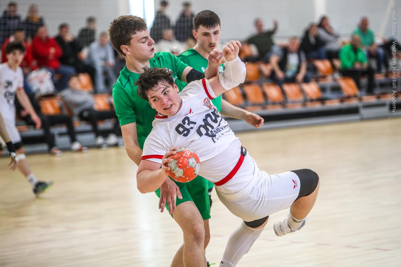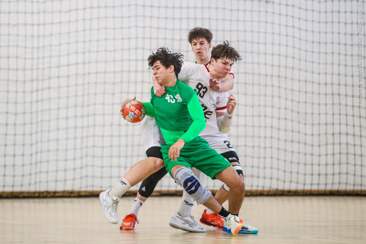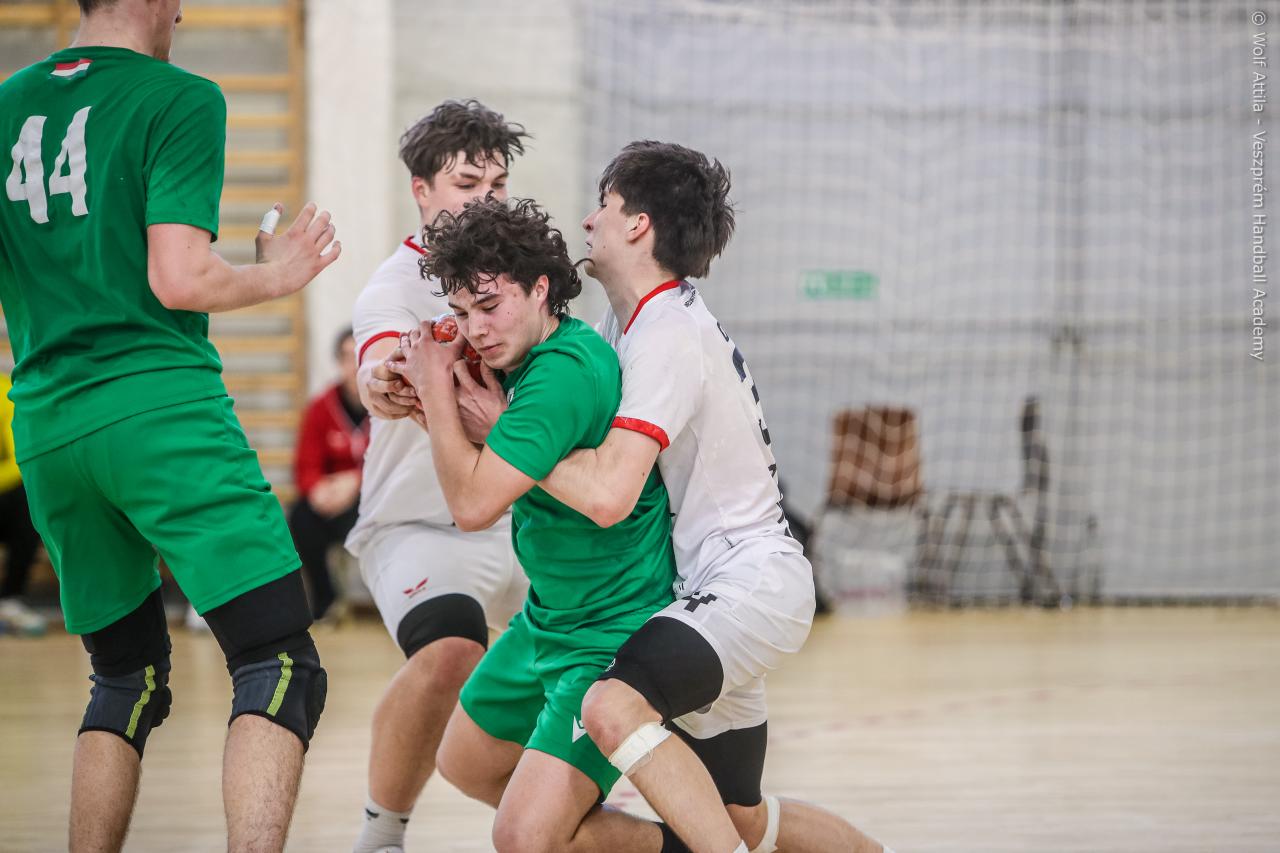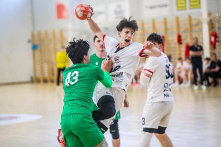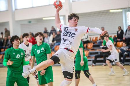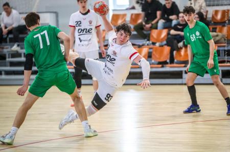 A Felsőház dobogójának harmadik helyét elfoglaló Fradi volt a vendégünk az U16 bajnokság rájátszásában. Egy jó ostromot követően az első perc letelte előtt behúztuk az első gólunkat, majd Novák első védésének is elismerően tapsolhattunk. Nem telt el sok idő, hogy az első kétperces kiállítást is kiosszák a játékvezetők: Békési ült le a kispadra. Nagyon jól ügyeskedtünk az emberhátrányban, hiszen a Fradi nem tudott gólt szerezni, cserébe nálunk Osváth lőtt, Novák hárított egyet, és majdnem 5 perc telt el, mire a vendégek behúzták első találatukat. Kisvártatva követte a második is, azonban egy hetesnek köszönhetően visszavettük a vezetést (7. perc, 3:2). Bedenek bár tovább növelte az előnyünket, Ács kiállítása után egy hetesnek és egy üreskapus gólnak köszönhetően visszaegyenlítettek a zöldek. A 12. percig tartani tudtuk a jó ütemet, hetesből is ziccerből is tovább kovácsoltuk az előnyünket, és két percnyi létszámfölénybe is kerültünk. Ez jó lehetőséget adott a 7. gólunk megszerzéséhez, ám utána megiramodott az FTC és egymás után háromszor is bevették a kapunkat, ezzel átvették a vezetést is. A játékidő negyedéig sikerült egalizálni, ekkor a Fradi is élt az időkéréssel (16. perc, 9-9). Hatékony volt a taktika egyeztetése hiszen újfent egy 3:0-s szériát hoztak, egy kétperces kiállítás törte meg a lendületüket. Ennek következtében sikerült apránként ledolgozni a különbséget, a 23. perc végére pedig ismét eggyel mentünk (13:12). A félidő fennmaradó részében jól álltuk az ostromot, de a Fradi folyamatosan a nyomunkban járt a gólok számában, az első játékrész lefújásakor megnyugtató 2 gólos fórral ment öltözőbe csapatunk (30. perc, 17:15).