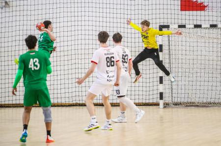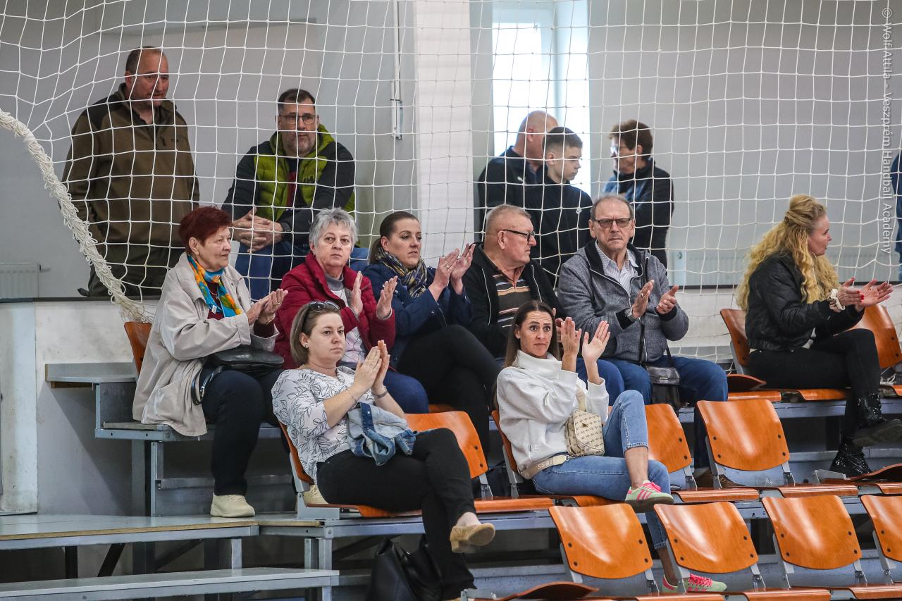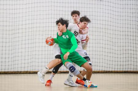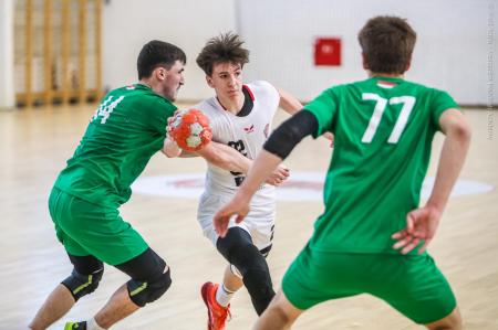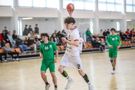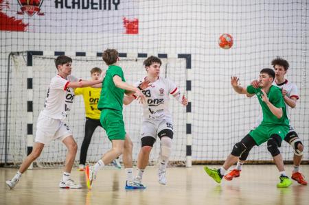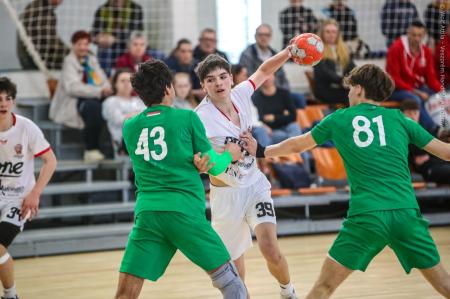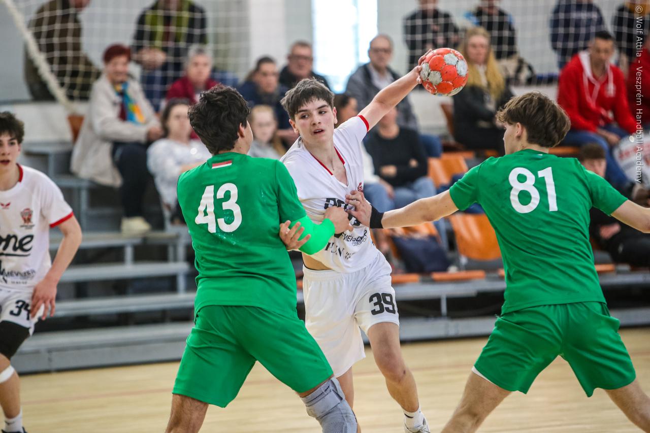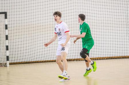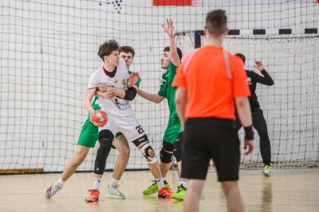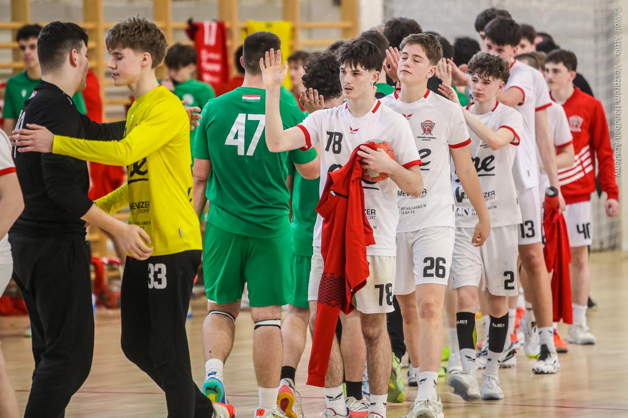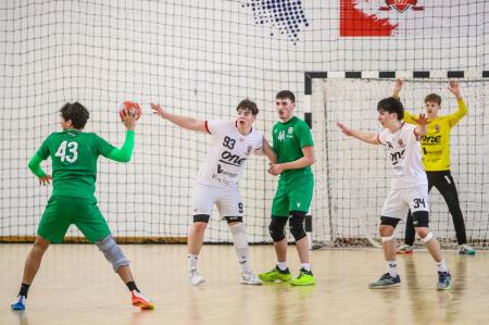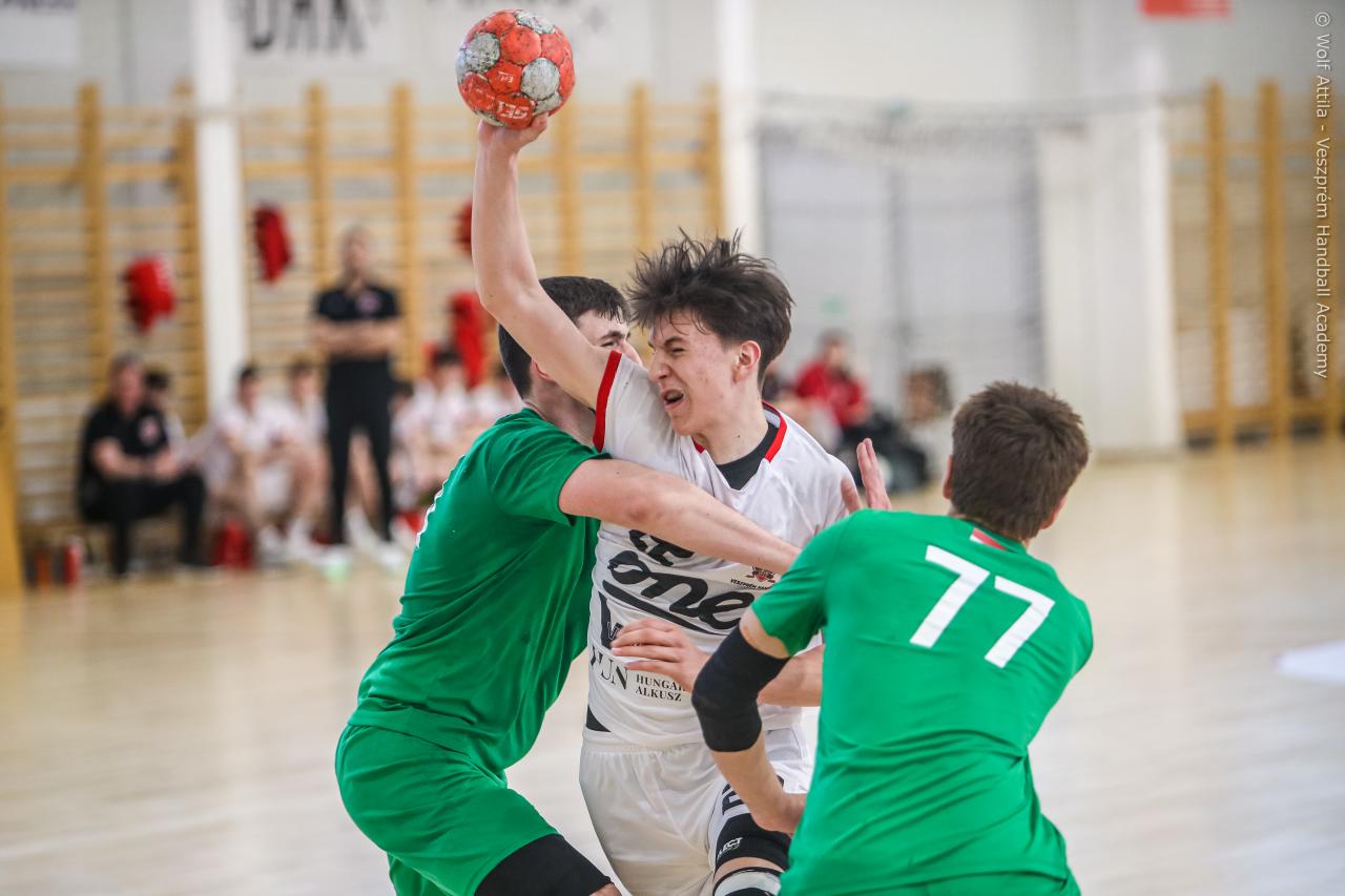 A Felsőház dobogójának harmadik helyét elfoglaló Fradi volt a vendégünk az U16 bajnokság rájátszásában. Egy jó ostromot követően az első perc letelte előtt behúztuk az első gólunkat, majd Novák első védésének is elismerően tapsolhattunk. Nem telt el sok idő, hogy az első kétperces kiállítást is kiosszák a játékvezetők: Békési ült le a kispadra. Nagyon jól ügyeskedtünk az emberhátrányban, hiszen a Fradi nem tudott gólt szerezni, cserébe nálunk Osváth lőtt, Novák hárított egyet, és majdnem 5 perc telt el, mire a vendégek behúzták első találatukat. Kisvártatva követte a második is, azonban egy hetesnek köszönhetően visszavettük a vezetést (7. perc, 3:2). Bedenek bár tovább növelte az előnyünket, Ács kiállítása után egy hetesnek és egy üreskapus gólnak köszönhetően visszaegyenlítettek a zöldek. A 12. percig tartani tudtuk a jó ütemet, hetesből is ziccerből is tovább kovácsoltuk az előnyünket, és két percnyi létszámfölénybe is kerültünk. Ez jó lehetőséget adott a 7. gólunk megszerzéséhez, ám utána megiramodott az FTC és egymás után háromszor is bevették a kapunkat, ezzel átvették a vezetést is. A játékidő negyedéig sikerült egalizálni, ekkor a Fradi is élt az időkéréssel (16. perc, 9-9). Hatékony volt a taktika egyeztetése hiszen újfent egy 3:0-s szériát hoztak, egy kétperces kiállítás törte meg a lendületüket. Ennek következtében sikerült apránként ledolgozni a különbséget, a 23. perc végére pedig ismét eggyel mentünk (13:12). A félidő fennmaradó részében jól álltuk az ostromot, de a Fradi folyamatosan a nyomunkban járt a gólok számában, az első játékrész lefújásakor megnyugtató 2 gólos fórral ment öltözőbe csapatunk (30. perc, 17:15).