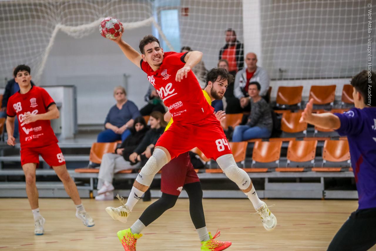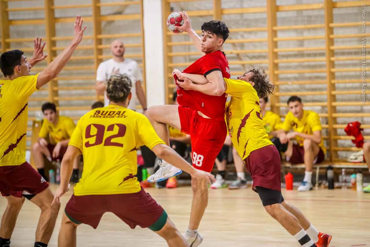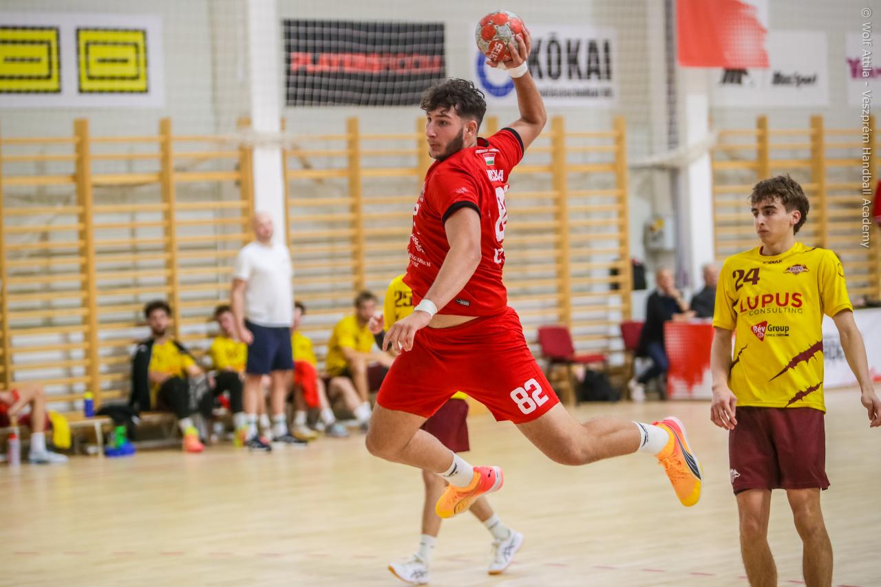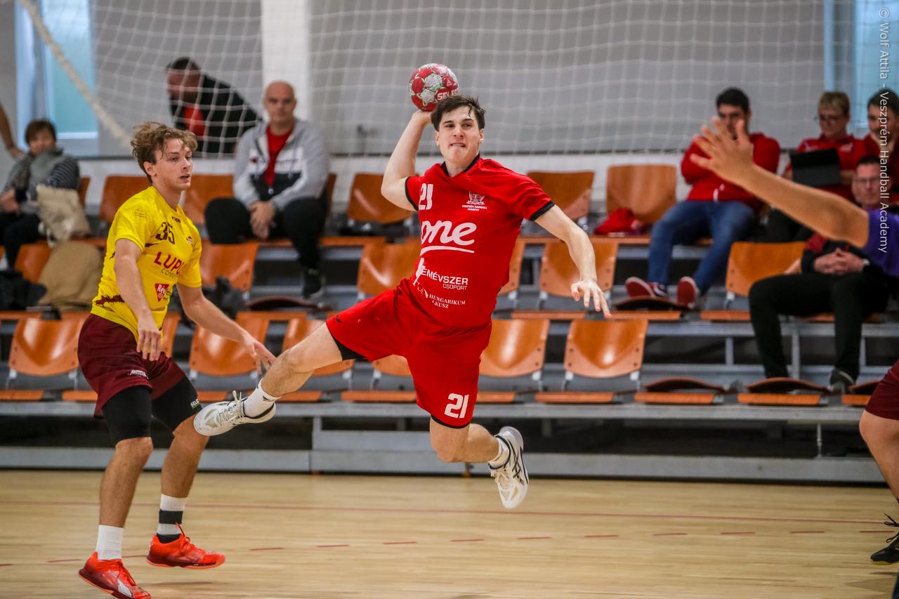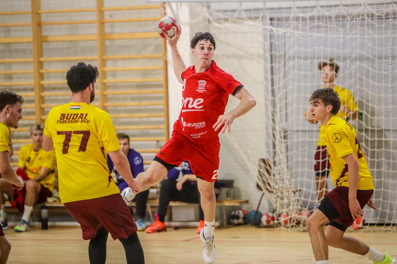 Az U20-as bajnokság 4. fordulójában akadémistáink a Budai Farkasok csapatát fogadták a DEVM Csarnokban. A találkozót a veszprémiek kezdték, a kezdősorban Körösi, Vandra, Edwards, Juhász-Tóth és Szabadi kapott helyet, míg a kapuban Tari Zsolt állt. A mérkőzés remekül indult hazai szempontból: előbb Tóth Barnabás talált be beállóból, majd Szabadi Anthony értékesített egy ziccert, így hamar kétgólos előnybe kerültünk (2:0, 2. perc). A vendégek betörésből szépítettek, ám Vandra kemény védekezésének köszönhetően labdát szereztünk, amelyet kétszer is gólra váltott. A fővárosiak hetesből és újabb betörésből próbáltak kapaszkodni, 4:3-ra fel is zárkóztak. A folytatásban kiegyenlített játék zajlott: Edwards büntetőből, Szabadi ismét ziccerből növelte a különbséget, de a Farkasok továbbra is tartották magukat (6:5, 12. perc). Ekkor érkezett pályára Czinczás Barna, aki rögtön átlövésből volt eredményes. Nem sokkal később Tari védését követően Körösi is megszerezte első gólját. A játékrész közepén Harnóczi és Bartha is bekapcsolódott a támadásokba, Anthony pedig újabb labdaszerzés után végigvitte akcióját, aminek hatására a vendégek időt kértek (10:7, 17. perc). A tempó ezután felgyorsult, mindkét fél gyors támadásokkal próbált operálni. Bartha és Körösi találataival már a 13. gólját szerezte a Veszprém, de az ellenfél rendre 2–3 gólra visszazárkózott. A 21. percben Petrik Nimród is pályára lépett, Tari újabb bravúrja után pedig Gulyás István időt kért (13:10). A félidő utolsó perceiben gólcsend következett: kimaradt helyzetek, védések és technikai hibák váltották egymást, a különbség azonban maradt két gól. Viczina a védelemben kapott szerepet, Edwards betörésből szerzett találata pedig kétperces kiállítást is eredményezett. A játékrész hajrájában Petrik büntetőt harcolt ki, amelyet Czinczás magabiztosan értékesített, így alakult ki a félidei eredmény: 16:13.