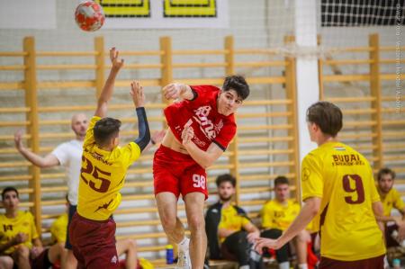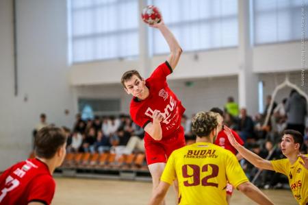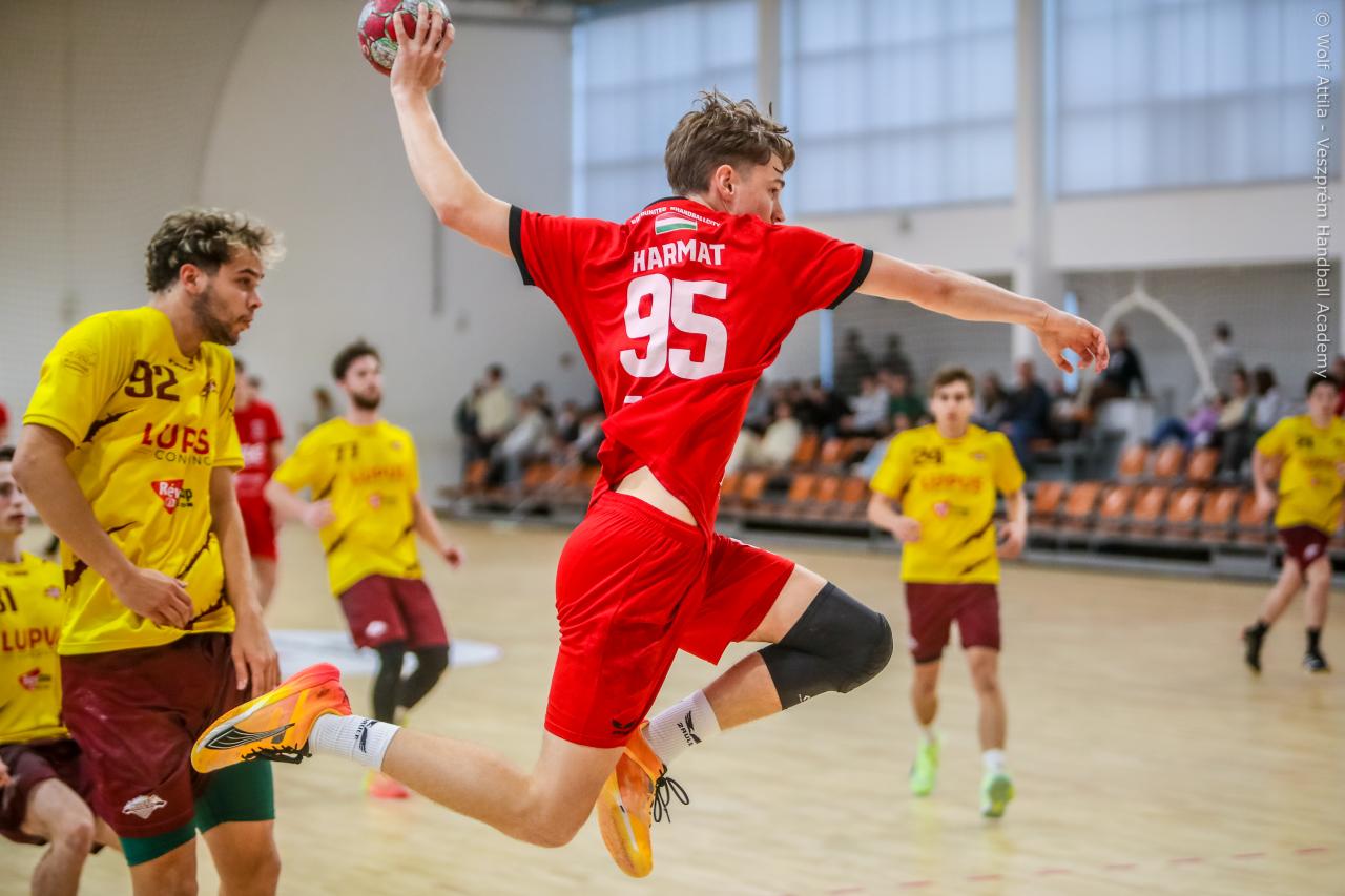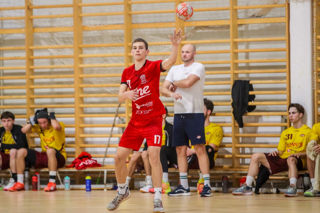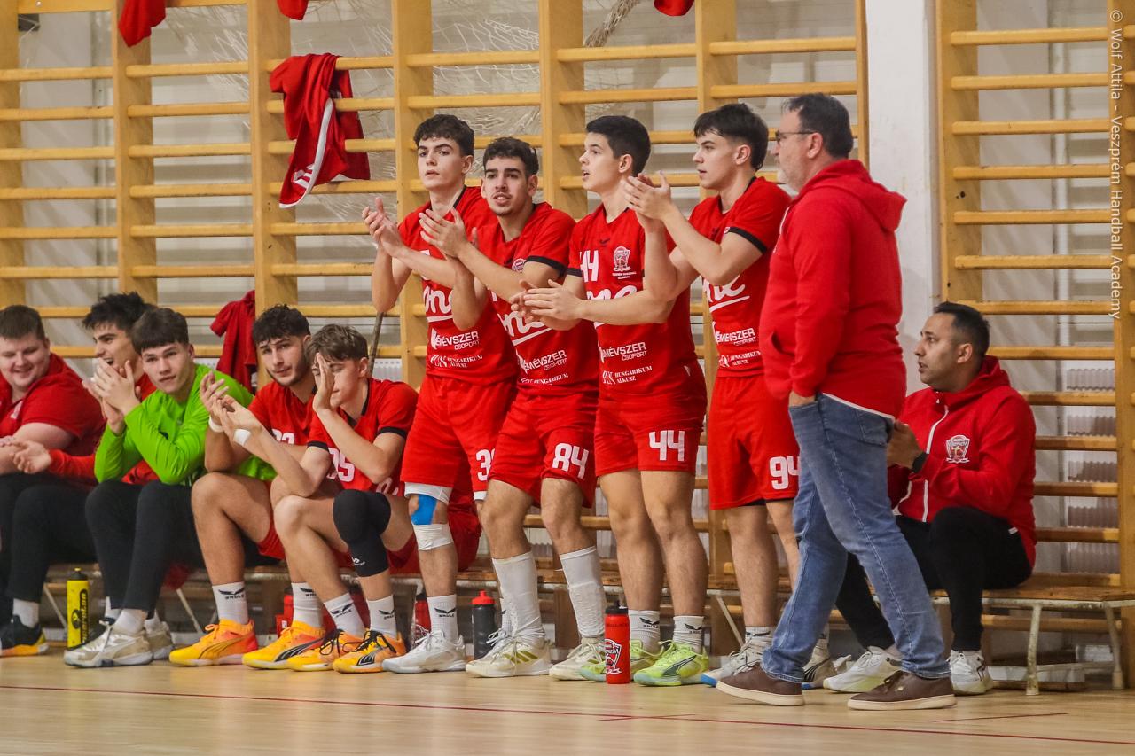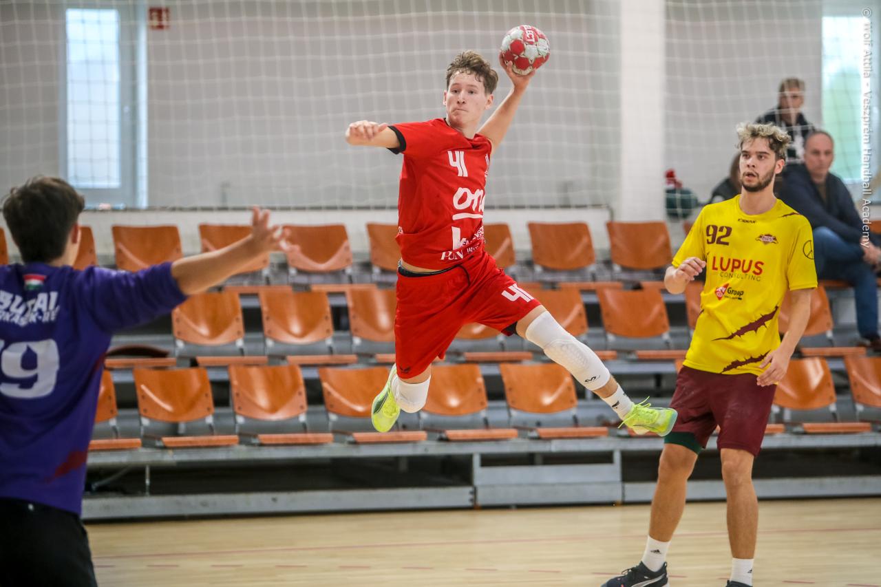 Az U20-as bajnokság 4. fordulójában akadémistáink a Budai Farkasok csapatát fogadták a DEVM Csarnokban. A találkozót a veszprémiek kezdték, a kezdősorban Körösi, Vandra, Edwards, Juhász-Tóth és Szabadi kapott helyet, míg a kapuban Tari Zsolt állt. A mérkőzés remekül indult hazai szempontból: előbb Tóth Barnabás talált be beállóból, majd Szabadi Anthony értékesített egy ziccert, így hamar kétgólos előnybe kerültünk (2:0, 2. perc). A vendégek betörésből szépítettek, ám Vandra kemény védekezésének köszönhetően labdát szereztünk, amelyet kétszer is gólra váltott. A fővárosiak hetesből és újabb betörésből próbáltak kapaszkodni, 4:3-ra fel is zárkóztak. A folytatásban kiegyenlített játék zajlott: Edwards büntetőből, Szabadi ismét ziccerből növelte a különbséget, de a Farkasok továbbra is tartották magukat (6:5, 12. perc). Ekkor érkezett pályára Czinczás Barna, aki rögtön átlövésből volt eredményes. Nem sokkal később Tari védését követően Körösi is megszerezte első gólját. A játékrész közepén Harnóczi és Bartha is bekapcsolódott a támadásokba, Anthony pedig újabb labdaszerzés után végigvitte akcióját, aminek hatására a vendégek időt kértek (10:7, 17. perc). A tempó ezután felgyorsult, mindkét fél gyors támadásokkal próbált operálni. Bartha és Körösi találataival már a 13. gólját szerezte a Veszprém, de az ellenfél rendre 2–3 gólra visszazárkózott. A 21. percben Petrik Nimród is pályára lépett, Tari újabb bravúrja után pedig Gulyás István időt kért (13:10). A félidő utolsó perceiben gólcsend következett: kimaradt helyzetek, védések és technikai hibák váltották egymást, a különbség azonban maradt két gól. Viczina a védelemben kapott szerepet, Edwards betörésből szerzett találata pedig kétperces kiállítást is eredményezett. A játékrész hajrájában Petrik büntetőt harcolt ki, amelyet Czinczás magabiztosan értékesített, így alakult ki a félidei eredmény: 16:13.