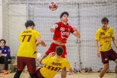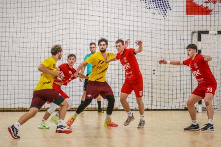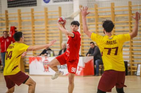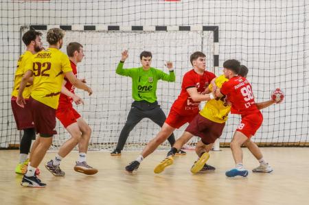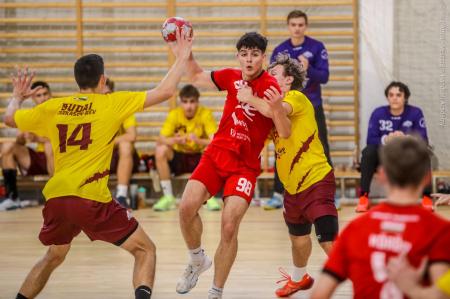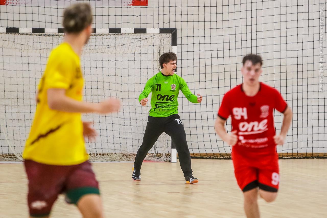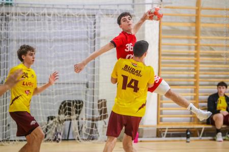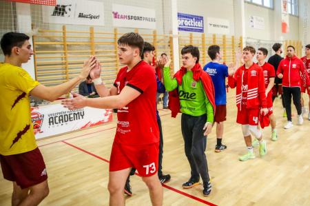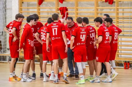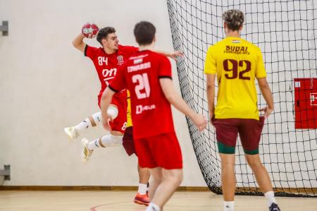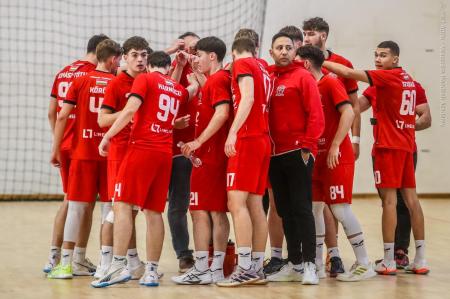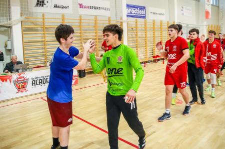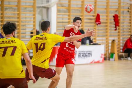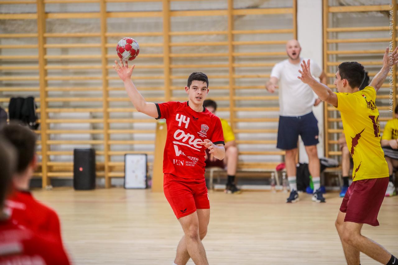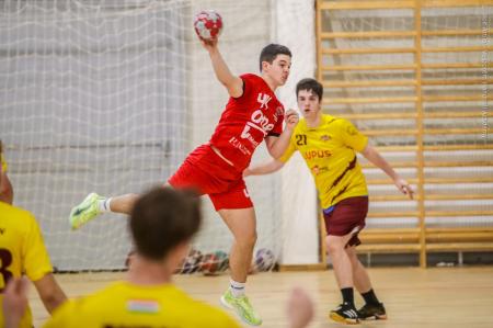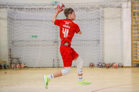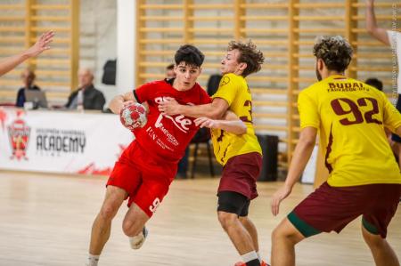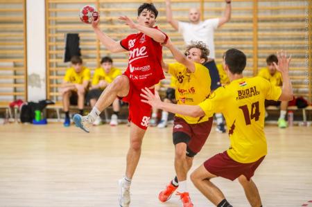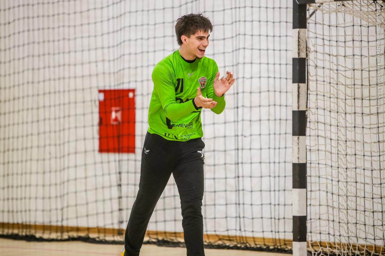 Az U20-as bajnokság 4. fordulójában akadémistáink a Budai Farkasok csapatát fogadták a DEVM Csarnokban. A találkozót a veszprémiek kezdték, a kezdősorban Körösi, Vandra, Edwards, Juhász-Tóth és Szabadi kapott helyet, míg a kapuban Tari Zsolt állt. A mérkőzés remekül indult hazai szempontból: előbb Tóth Barnabás talált be beállóból, majd Szabadi Anthony értékesített egy ziccert, így hamar kétgólos előnybe kerültünk (2:0, 2. perc). A vendégek betörésből szépítettek, ám Vandra kemény védekezésének köszönhetően labdát szereztünk, amelyet kétszer is gólra váltott. A fővárosiak hetesből és újabb betörésből próbáltak kapaszkodni, 4:3-ra fel is zárkóztak. A folytatásban kiegyenlített játék zajlott: Edwards büntetőből, Szabadi ismét ziccerből növelte a különbséget, de a Farkasok továbbra is tartották magukat (6:5, 12. perc). Ekkor érkezett pályára Czinczás Barna, aki rögtön átlövésből volt eredményes. Nem sokkal később Tari védését követően Körösi is megszerezte első gólját. A játékrész közepén Harnóczi és Bartha is bekapcsolódott a támadásokba, Anthony pedig újabb labdaszerzés után végigvitte akcióját, aminek hatására a vendégek időt kértek (10:7, 17. perc). A tempó ezután felgyorsult, mindkét fél gyors támadásokkal próbált operálni. Bartha és Körösi találataival már a 13. gólját szerezte a Veszprém, de az ellenfél rendre 2–3 gólra visszazárkózott. A 21. percben Petrik Nimród is pályára lépett, Tari újabb bravúrja után pedig Gulyás István időt kért (13:10). A félidő utolsó perceiben gólcsend következett: kimaradt helyzetek, védések és technikai hibák váltották egymást, a különbség azonban maradt két gól. Viczina a védelemben kapott szerepet, Edwards betörésből szerzett találata pedig kétperces kiállítást is eredményezett. A játékrész hajrájában Petrik büntetőt harcolt ki, amelyet Czinczás magabiztosan értékesített, így alakult ki a félidei eredmény: 16:13.
